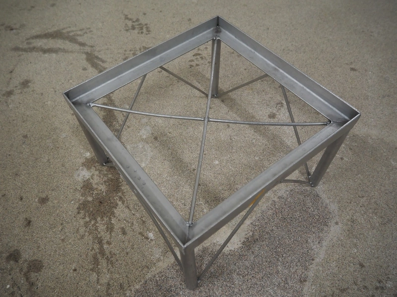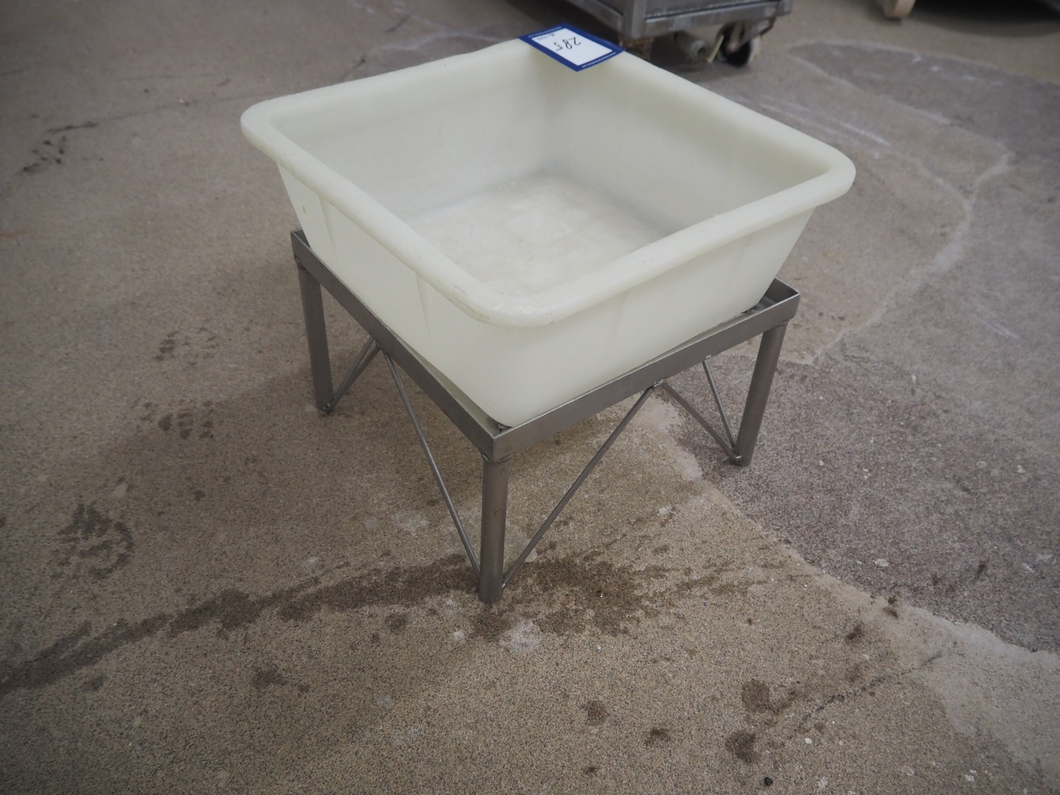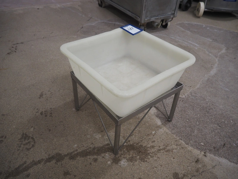 S/s frame with plastic crate, dimensions frame: 370 mm x 370 mm x 240 mm.