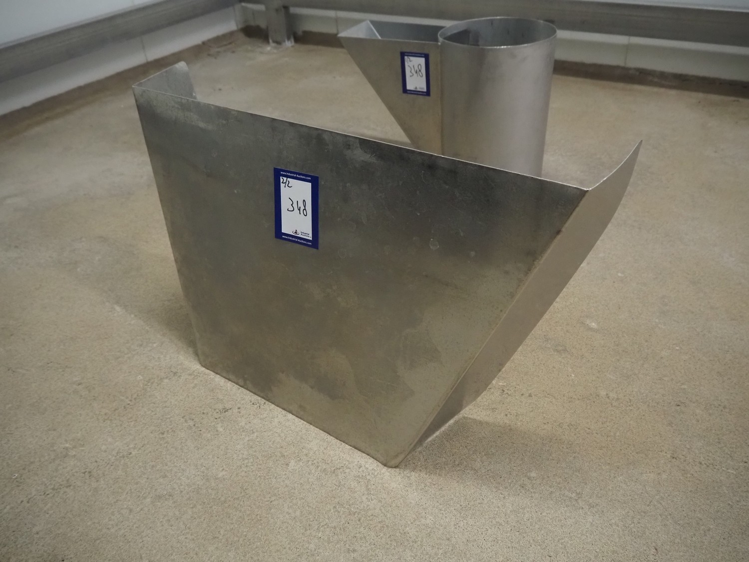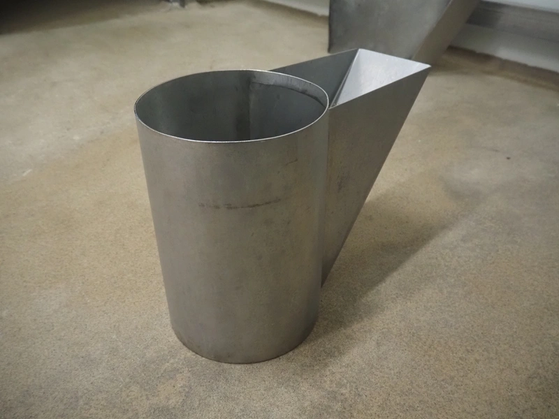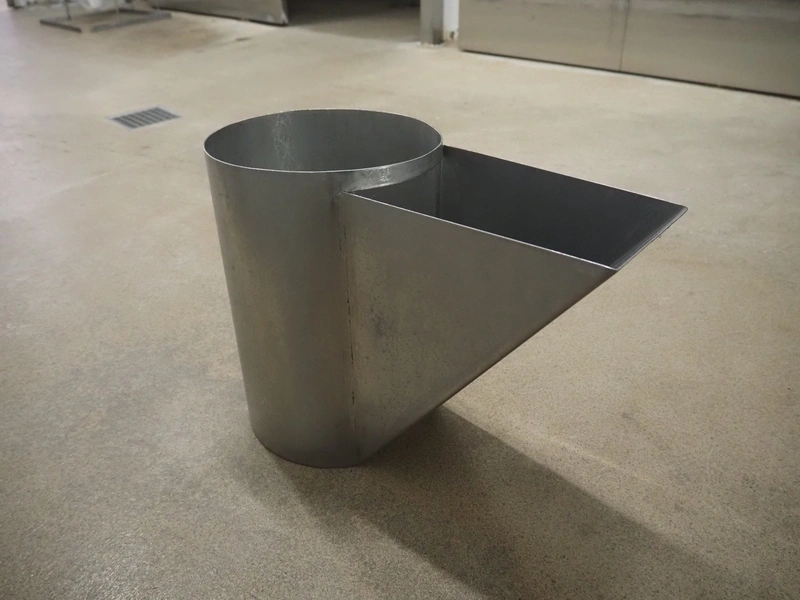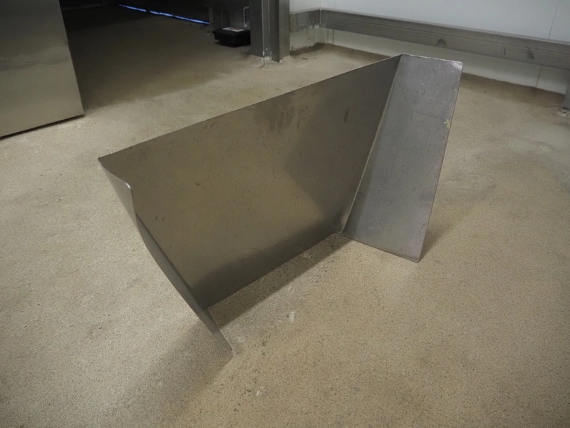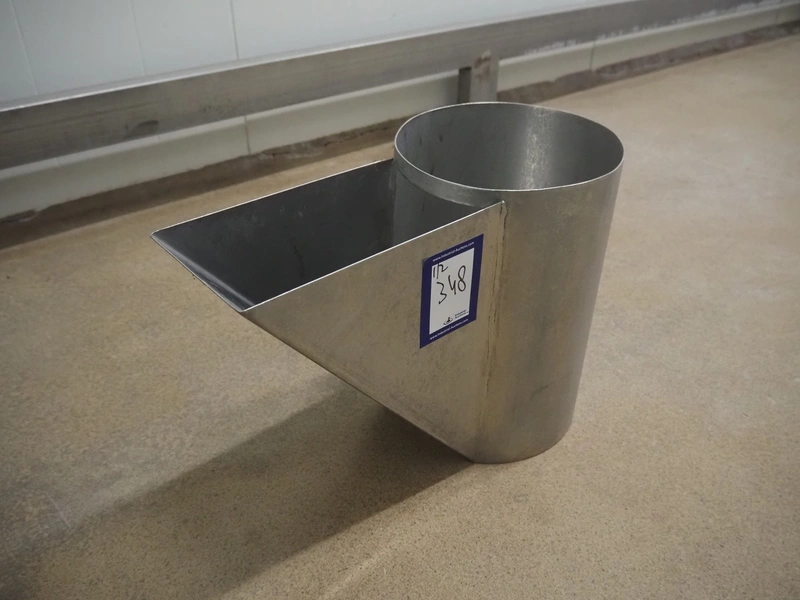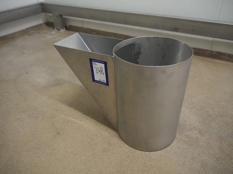 S/s funnel, dimensions: 700 mm x 150 mm x 450 mm. Including s/s cylinder.