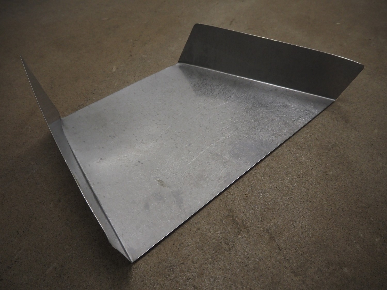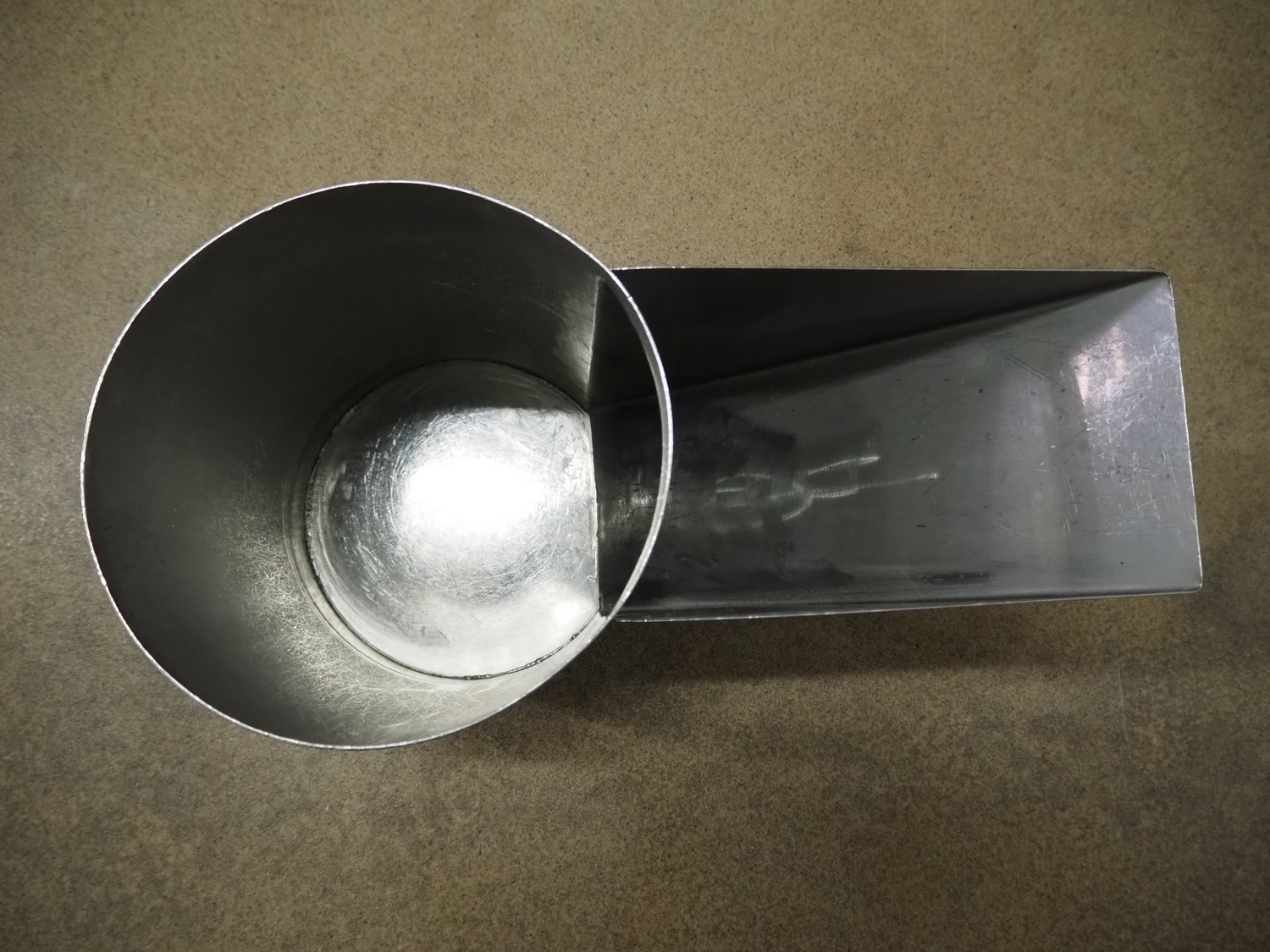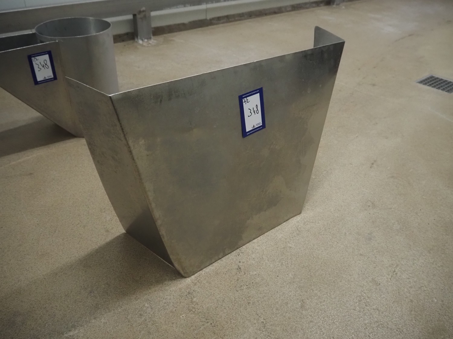 S/s funnel, dimensions: 700 mm x 150 mm x 450 mm. Including s/s cylinder.