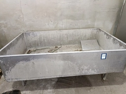 S/s mobile tub with drain, dimensions: 1100 mm x 460 mm x 1160 mm.€ 25,000 bids26/02/2026 15:20 -