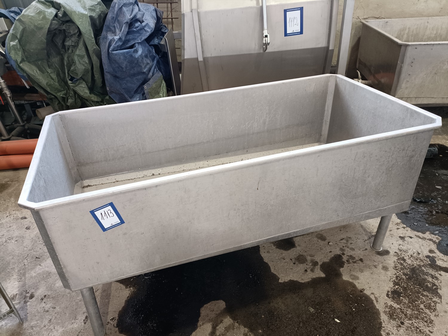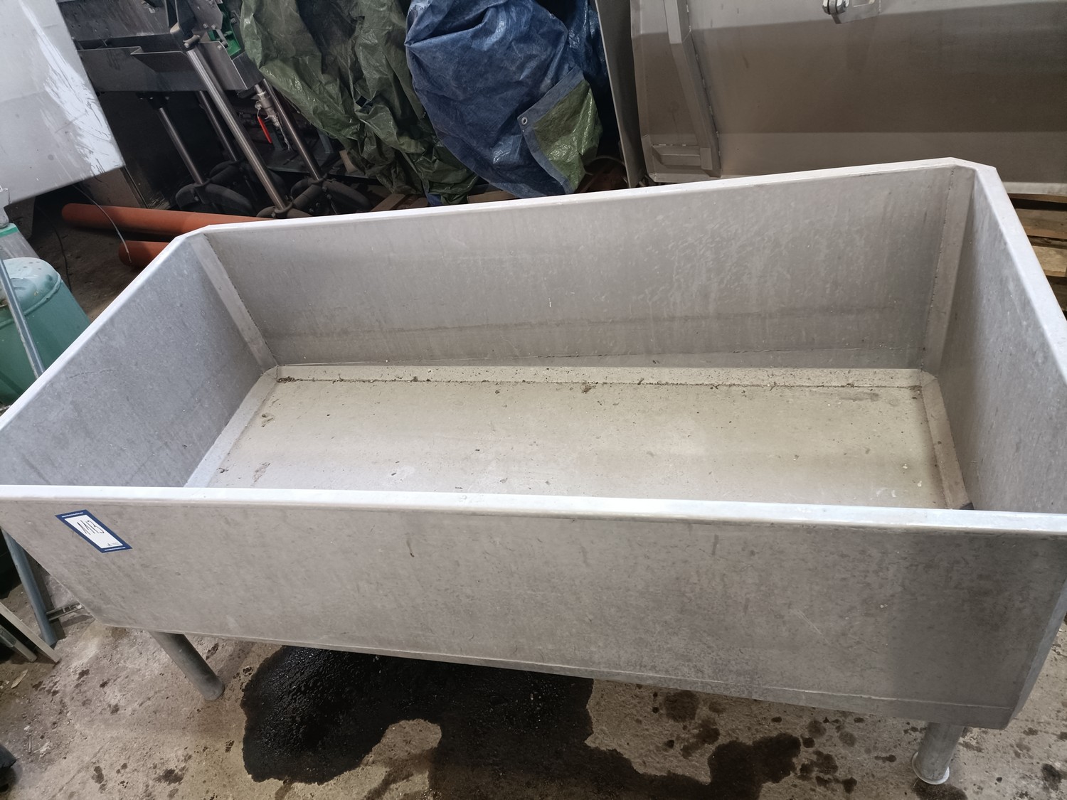 S/s tub, diameter outfeed: Ø 40 mm, inside dimensions: 1540 mm x 730 mm x 760 mm, total dimensions: 1600 mm x 800 mm x 760 mm.