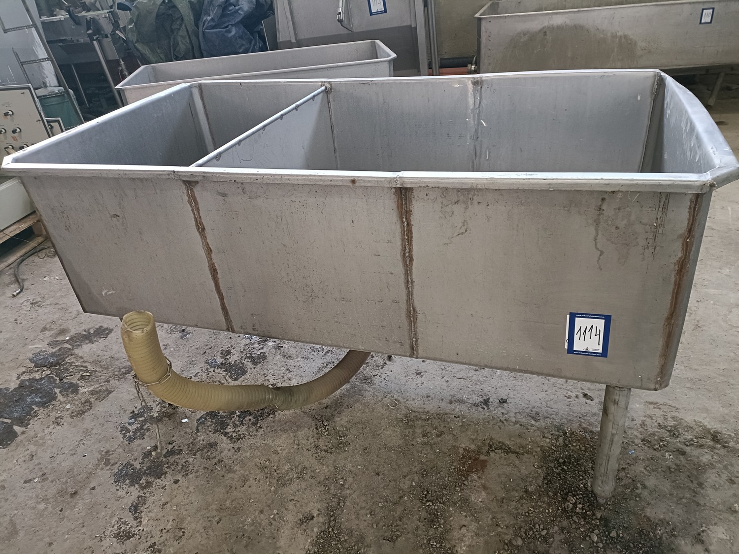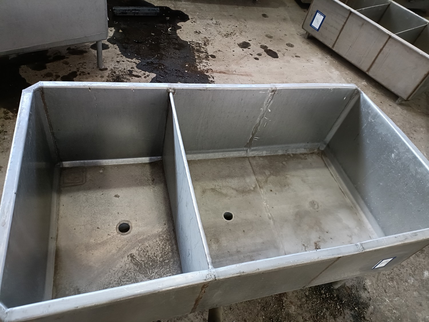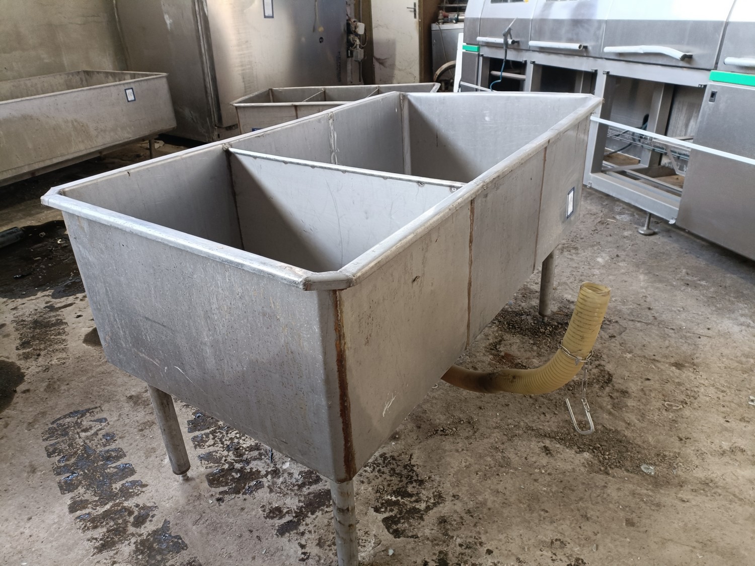 S/s tub, inside dimensions: 1540 mm x 800 mm x 480 mm, total dimensions: 1600 mm x 870 mm x 920 mm.