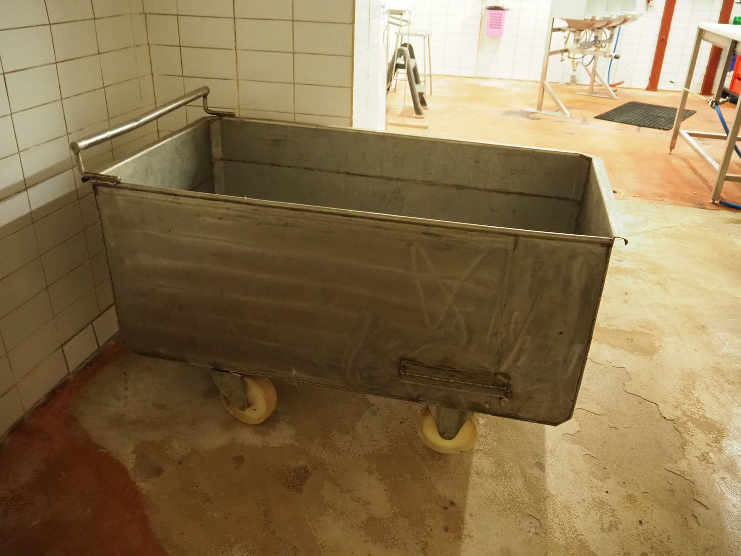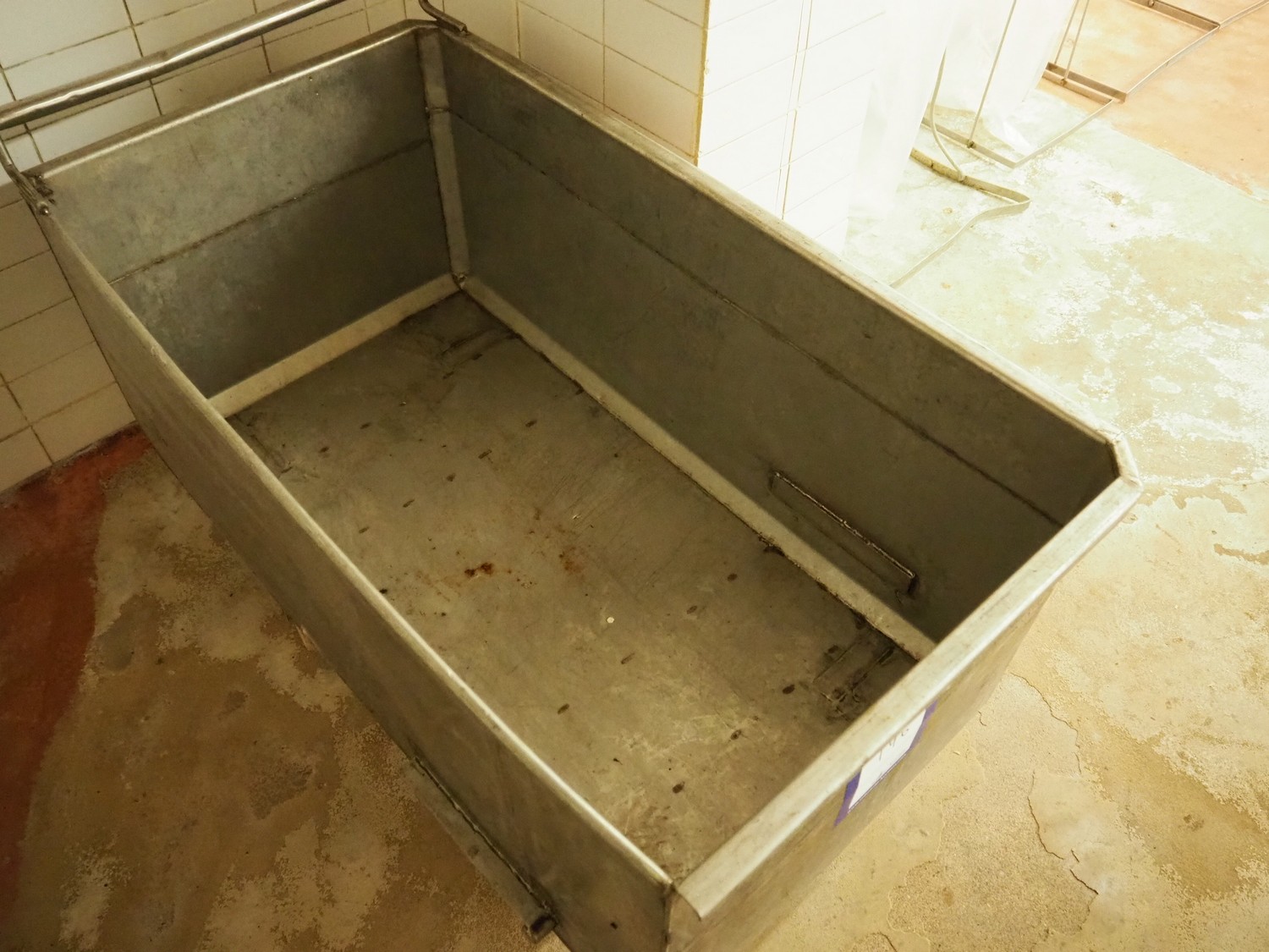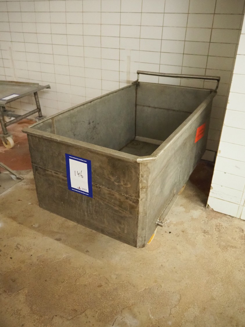 S/s mobile tub, dimensions: 1270 mm x 700 mm x 780 mm.