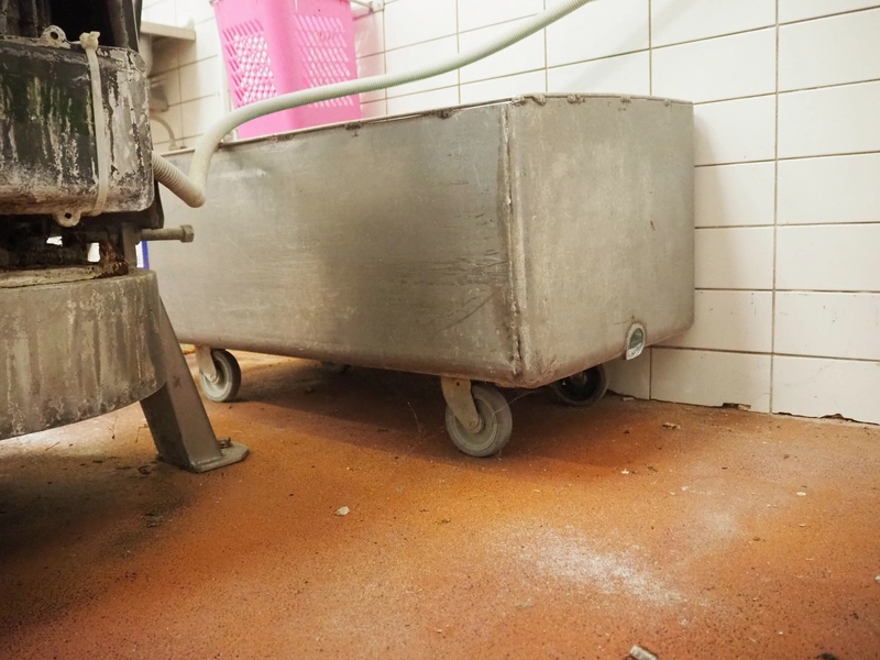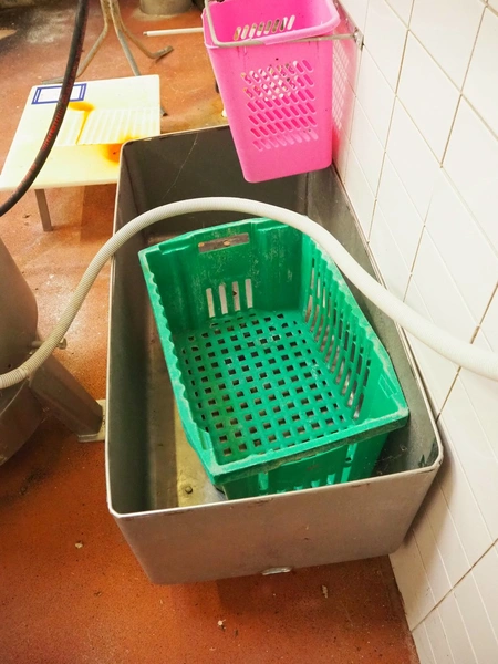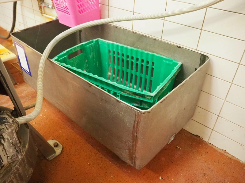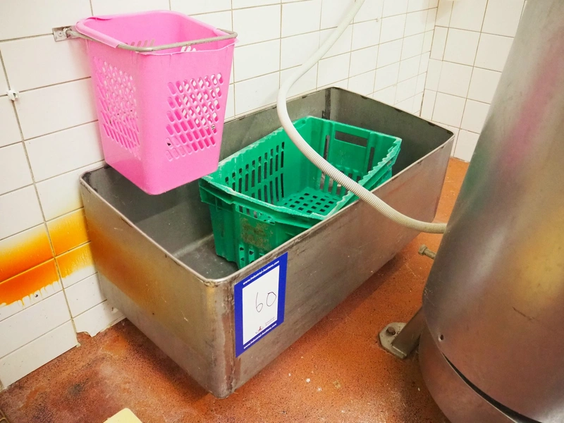 Mobile s/s tub, dimensions: 1020 mm x 500 mm x 470 mm.