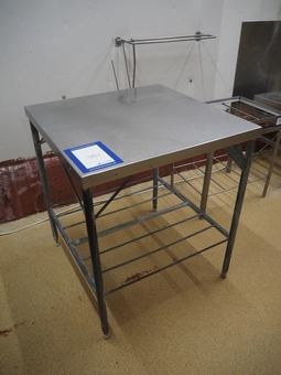 S/s table, plastic top, dimensions: 700 mm x 700 mm x 1100 mm.€ 50,000 bids26/02/2026 14:50 -