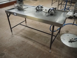 S/s table, plastic top, dimensions top: 1680 mm x 690 mm, total dimensions: 1680 mm x 1600 mm x 840 mm.€ 75,000 bids26/02/2026 14:50 -