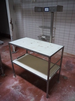 S/s table, plastic top, dimensions: 1050 mm x 600 mm x 1620 mm.€ 25,000 bids26/02/2026 14:50 -