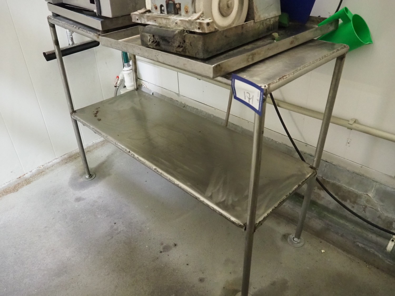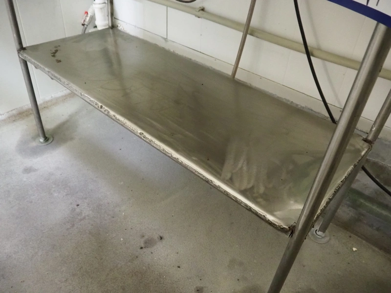 S/s table, dimensions: 1150 mm x 440 mm x 890 mm.