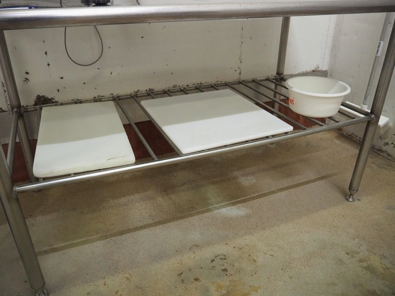 S/s table, dimensions: 1500 mm x 700 mm x 870 mm.
