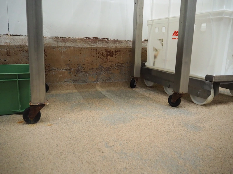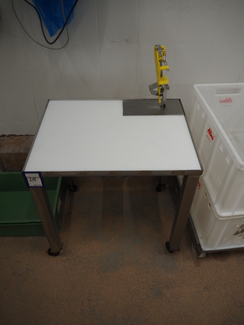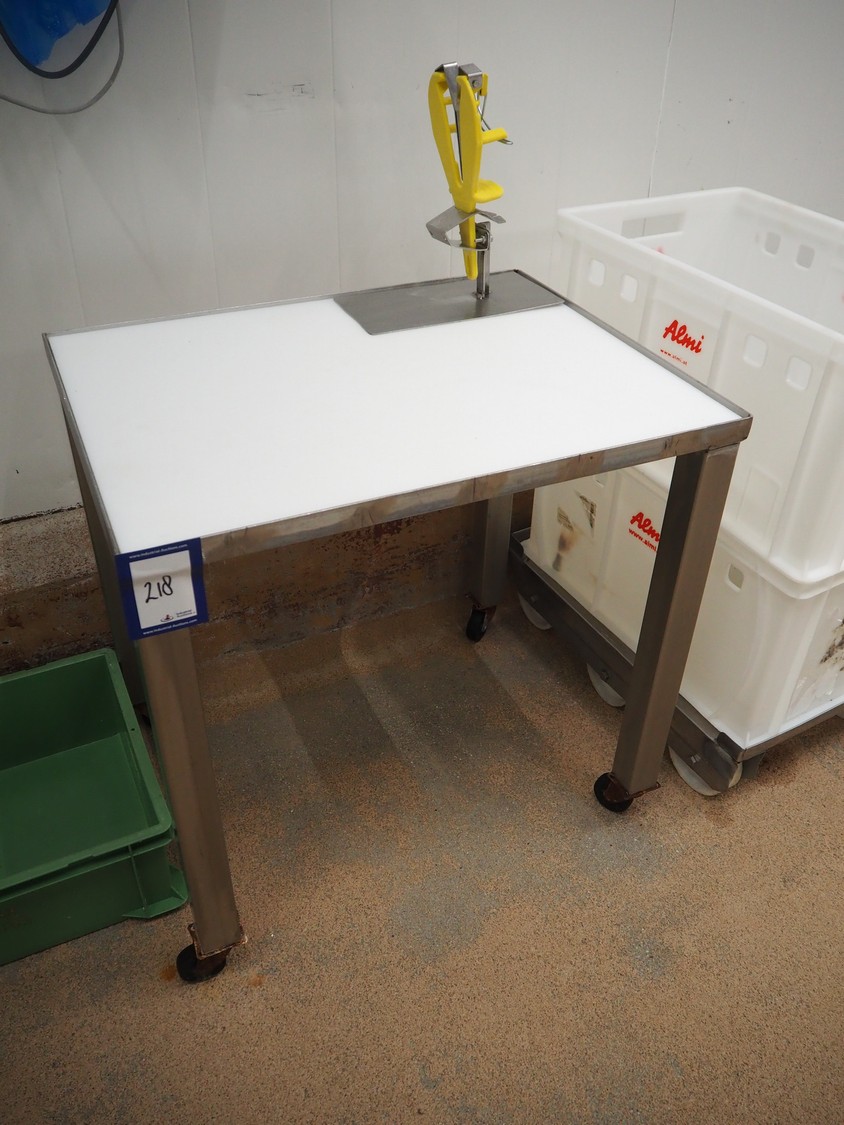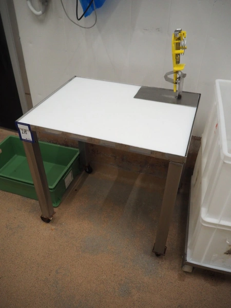 S/s mobile table, plastic top, dimensions: 700 mm x 540 mm x 1000 mm.