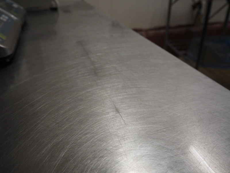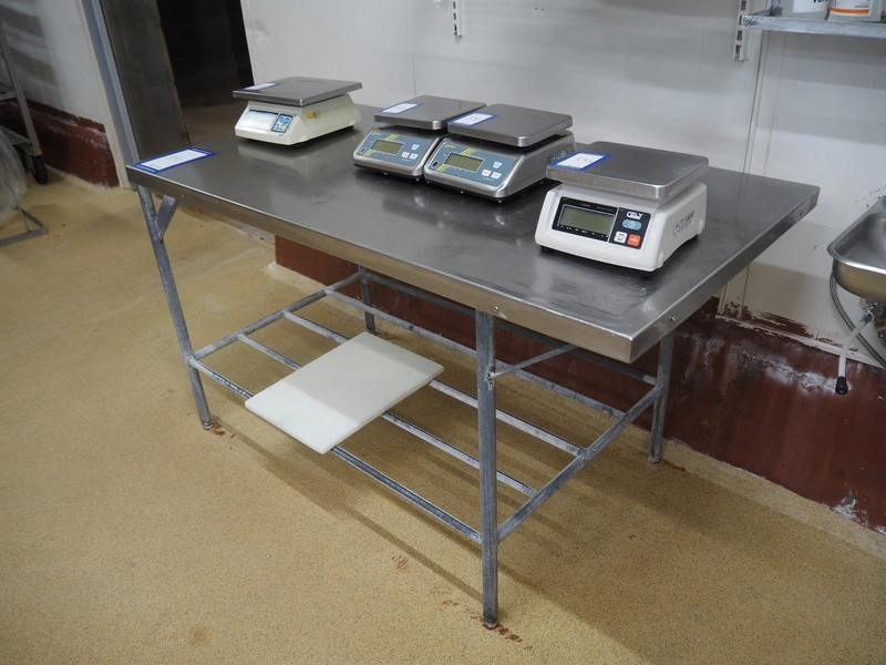 S/s table, dimensions: 1550 mm x 800 mm x 900 mm.