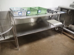 S/s sorting table for 3 E2 crates, dimensions: 1400 mm x 1300 mm x 1300 mm. Without work tops. Never used.€ 200,000 bids26/02/2026 14:50 -