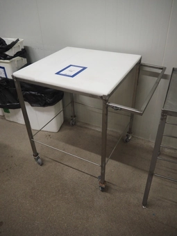 2 mobile s/s tables with plastic worktop, dimensions: (2x) 660 mm x 530 mm x 680 mm.€ 60,001 bid26/02/2026 14:50 -