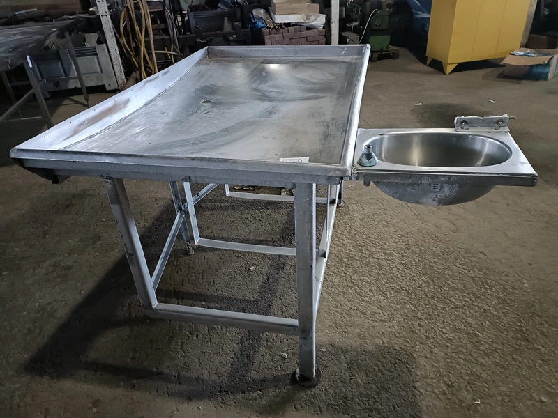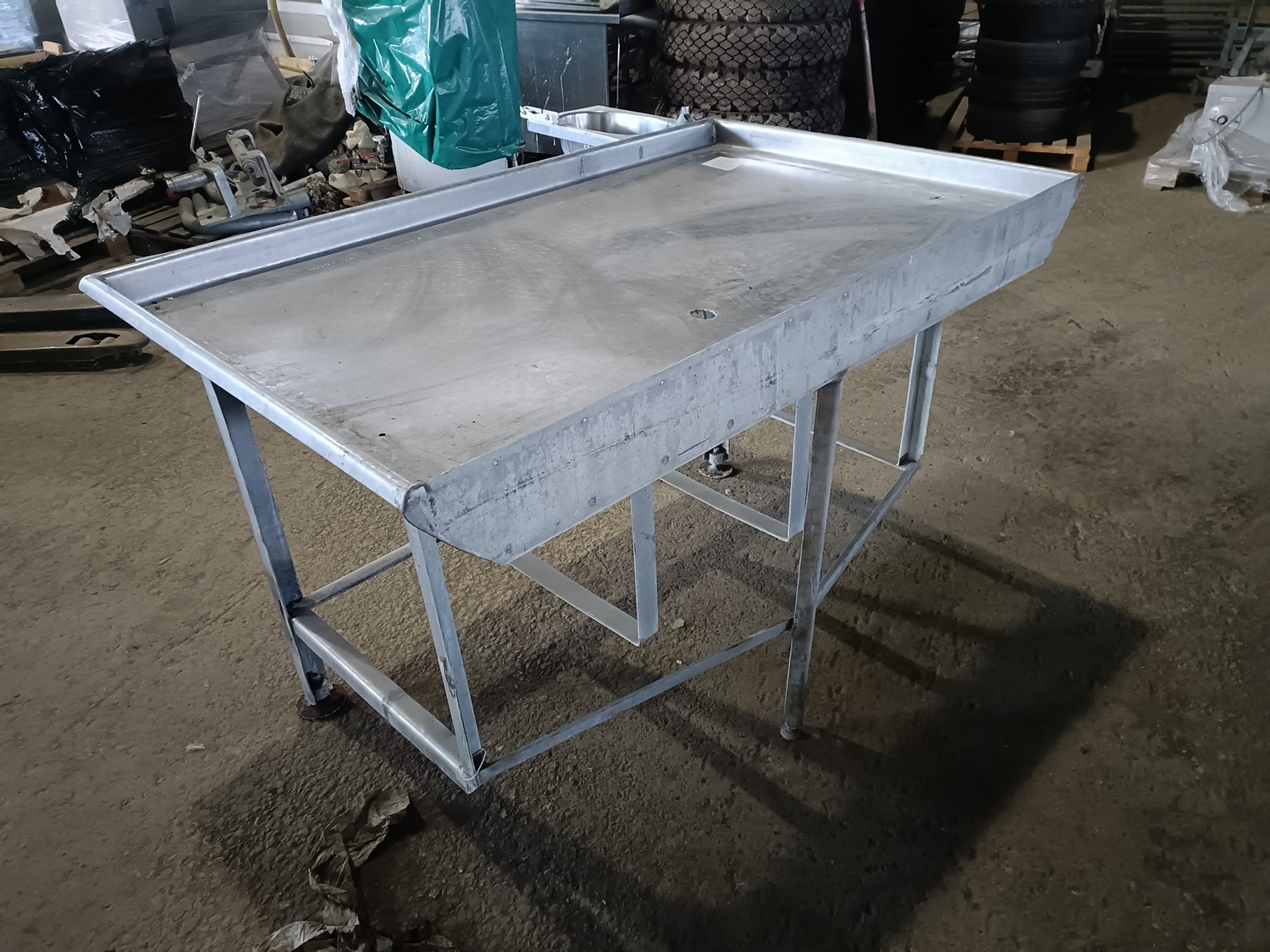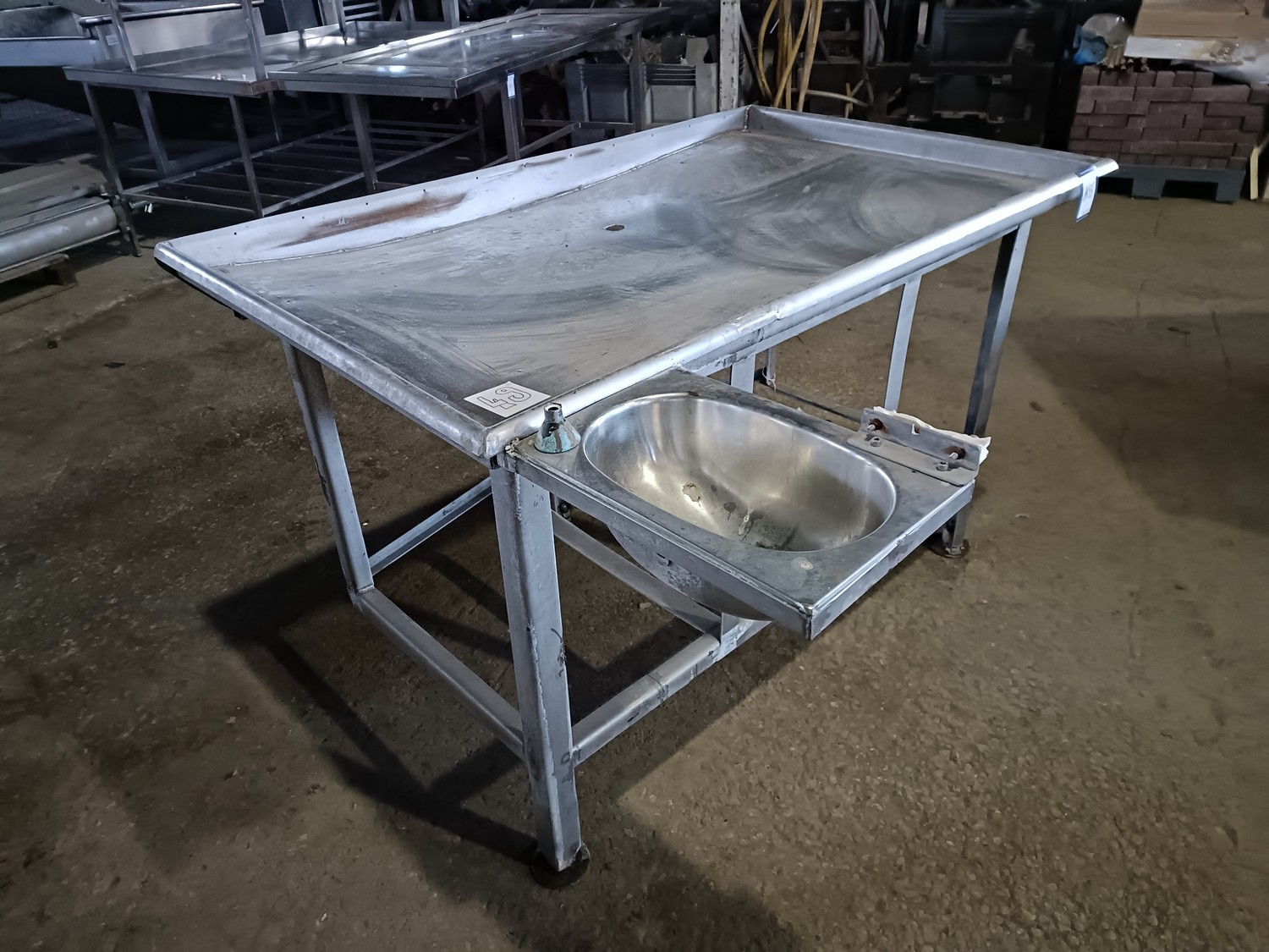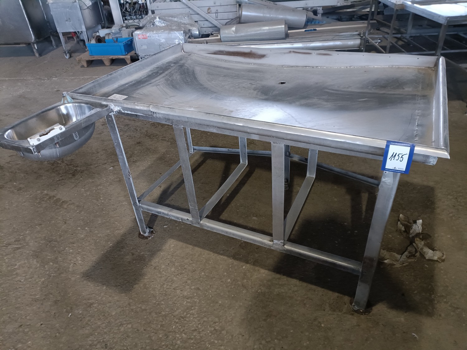 S/s table with drain, dimensions: 1500 mm x 930 mm x 935 mm.