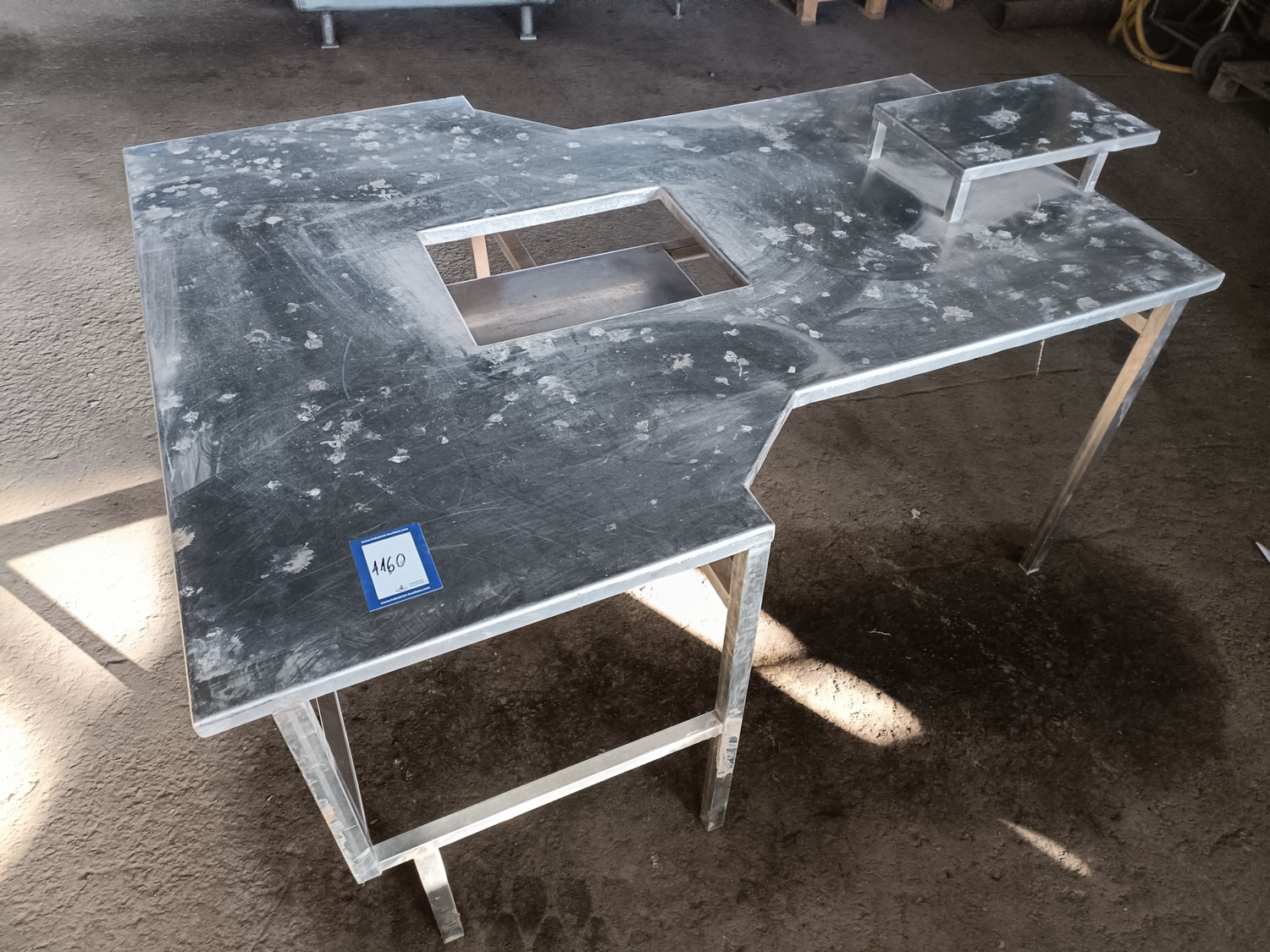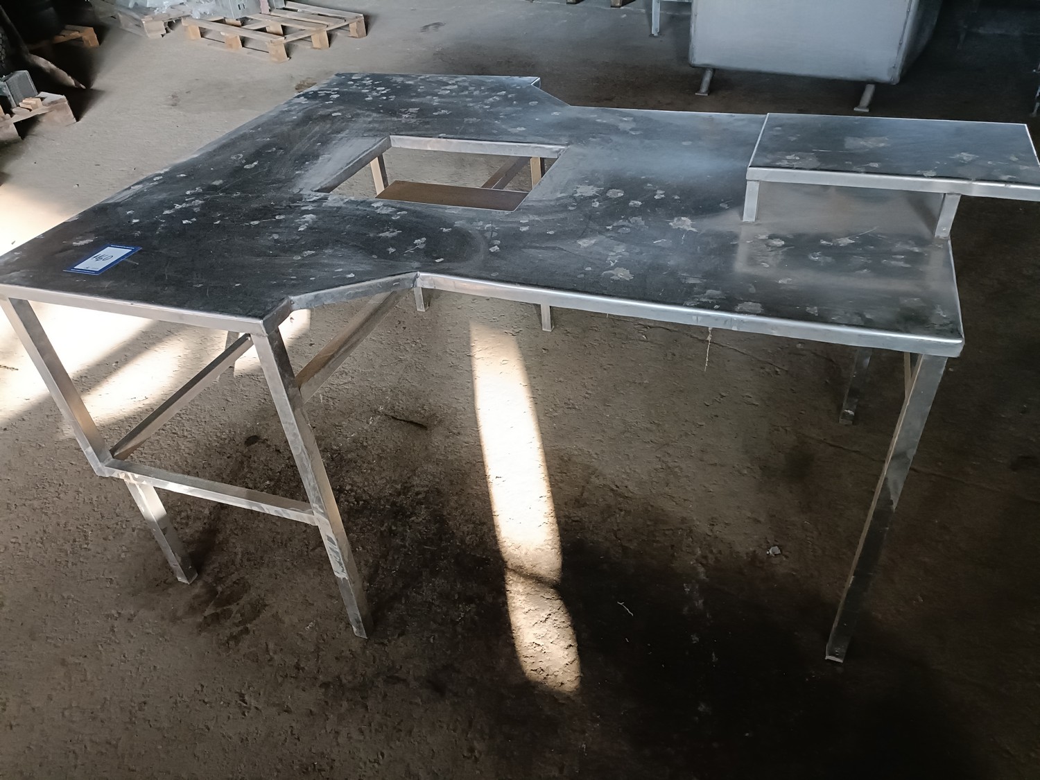 S/s table, dimensions: 1500 mm x 1200 mm x 840 mm.