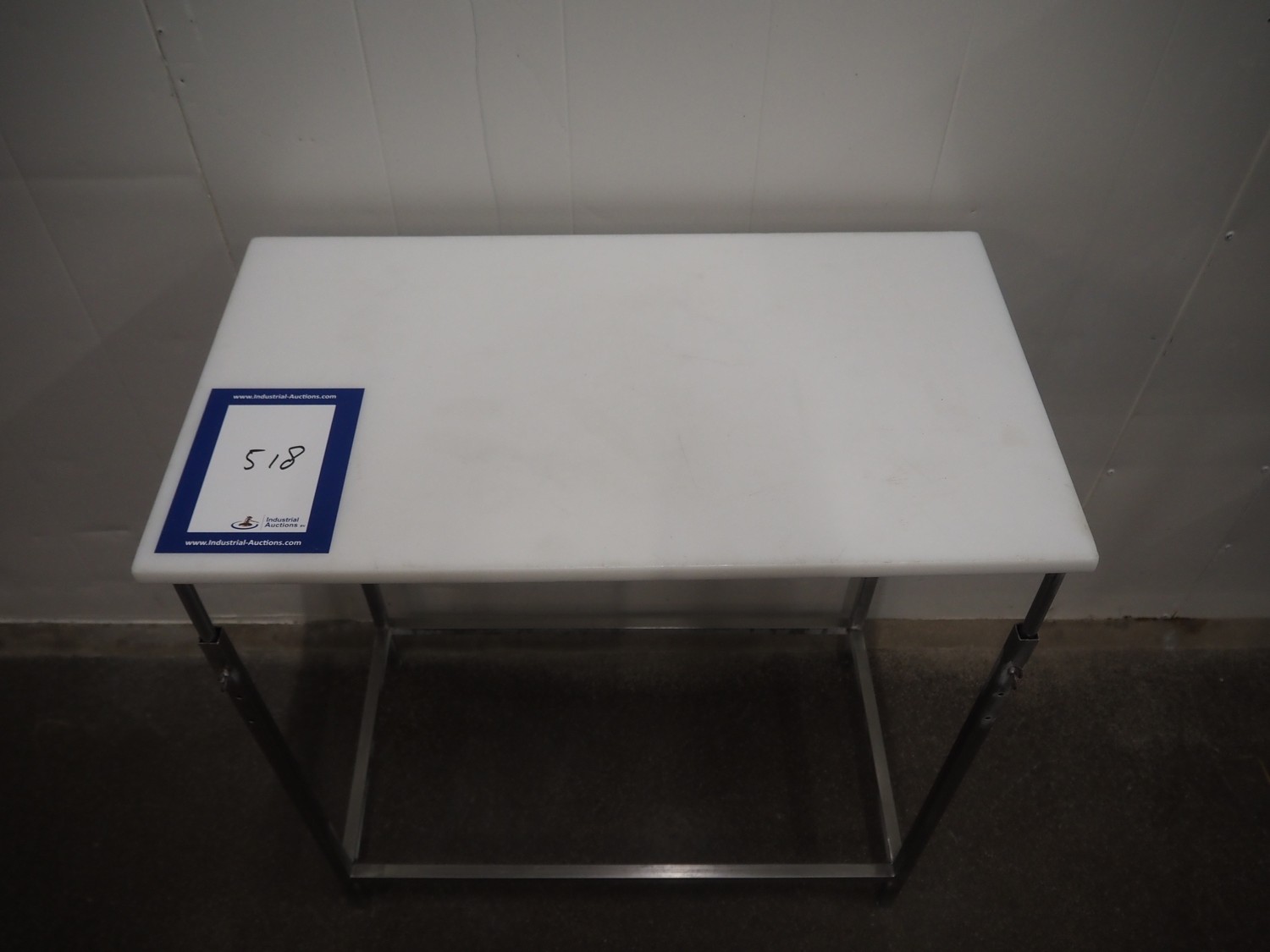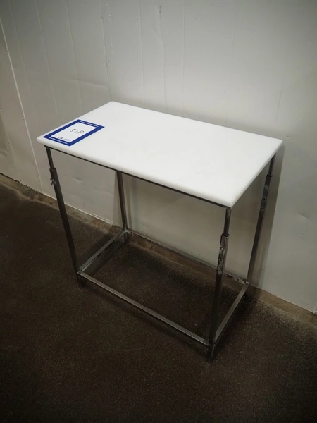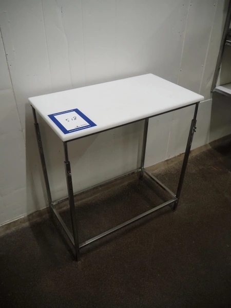 Mobile s/s table with plastic worktop, dimensions: 800 mm x 450 mm x 870 mm.