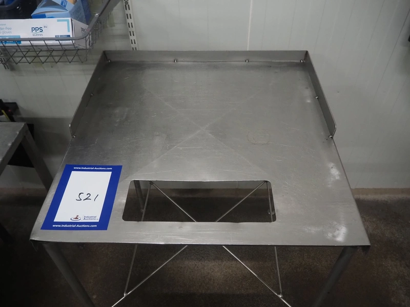 S/s table, dimensions: 710 mm x 730 mm x 900 mm.