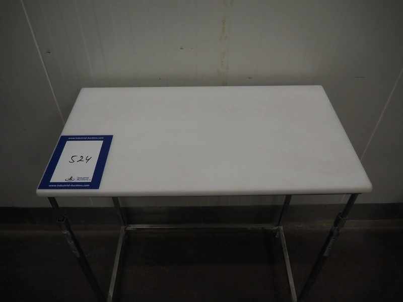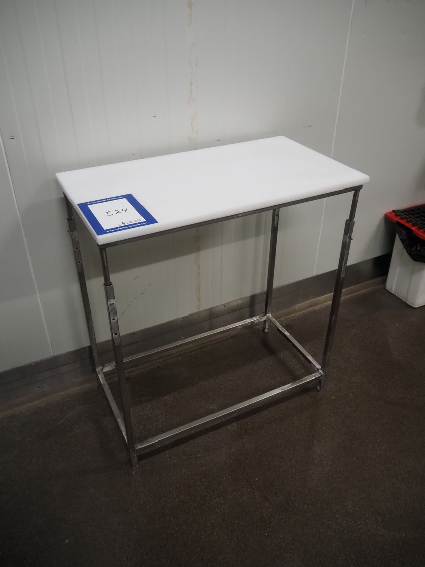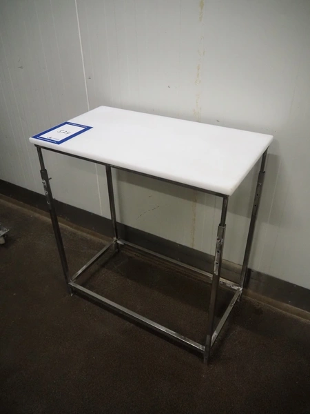 Mobile s/s table with plastic worktop, dimensions: 800 mm x 450 mm x 870 mm.