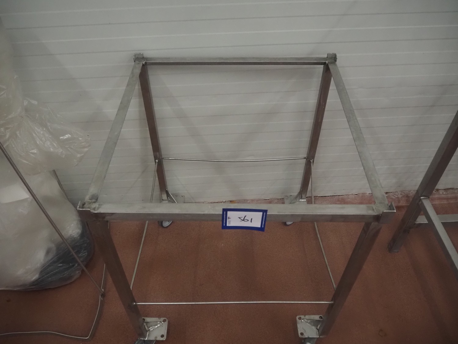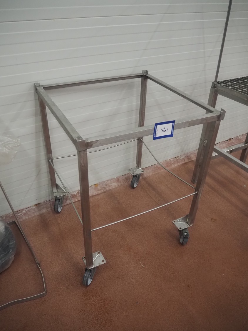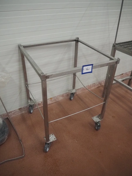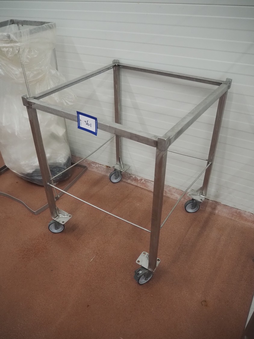 Mobile s/s frame for table, dimensions: 700 mm x 700 mm x 870 mm.