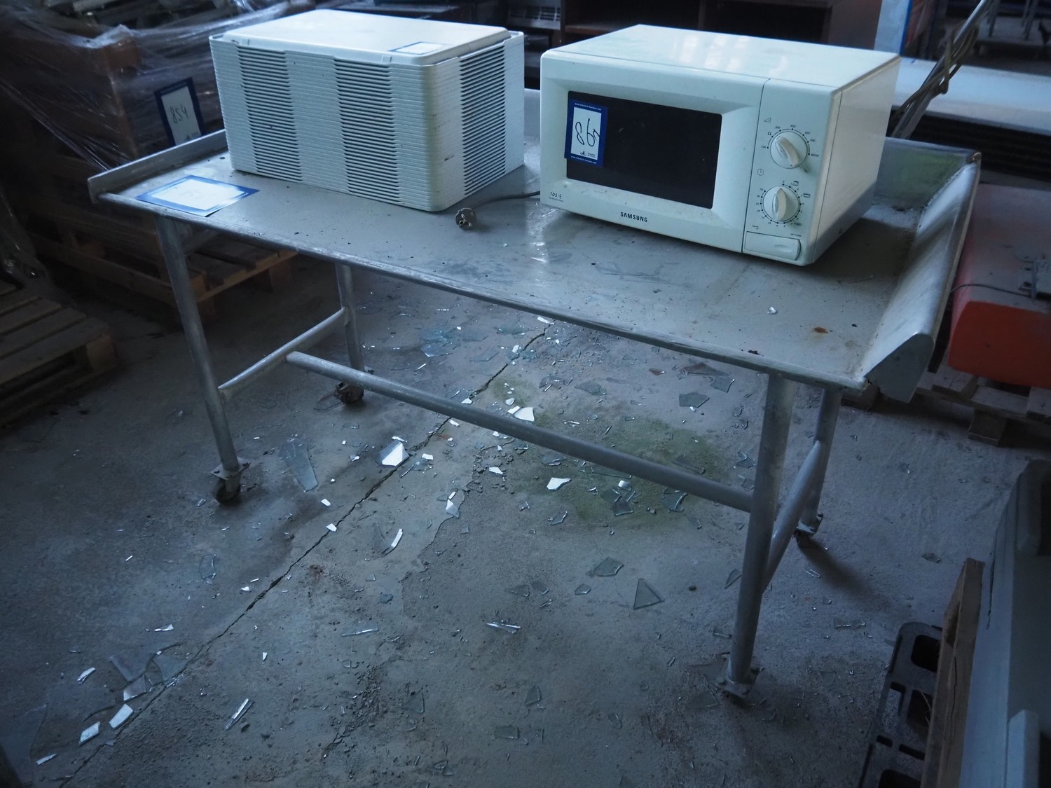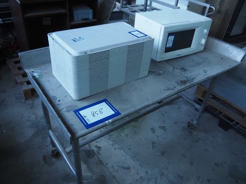 Mobile s/s table, dimensions: 1520 mm x 750 mm x 900 mm.
