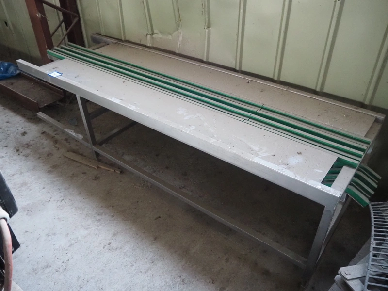 S/s packaging table, dimensions: 2600 mm x 800 mm x 700 mm. Belt is missing.