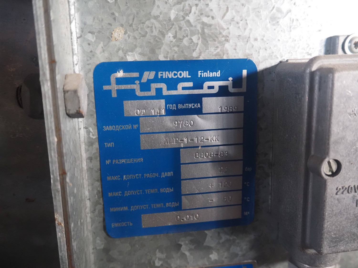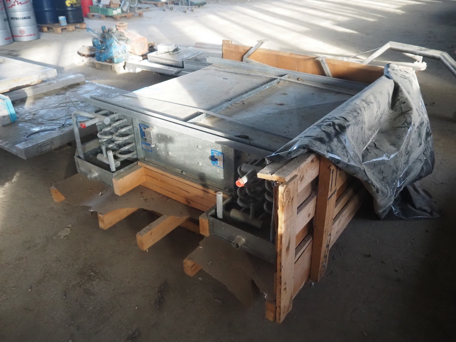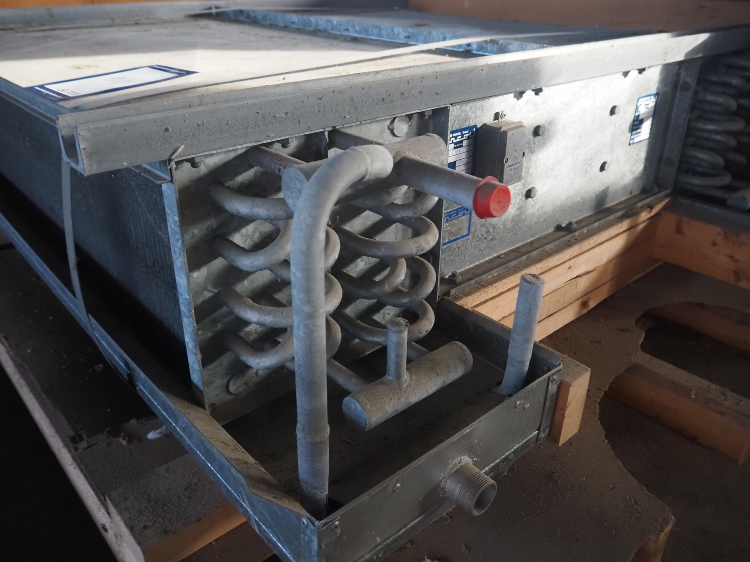 Wooden crate with Fincoil evaporator, type: AMP-1-12-KK, serial number: 8808-83, year of construction: 1989, dimensions crate: 1700 mm x 1500 mm x 700 mm.