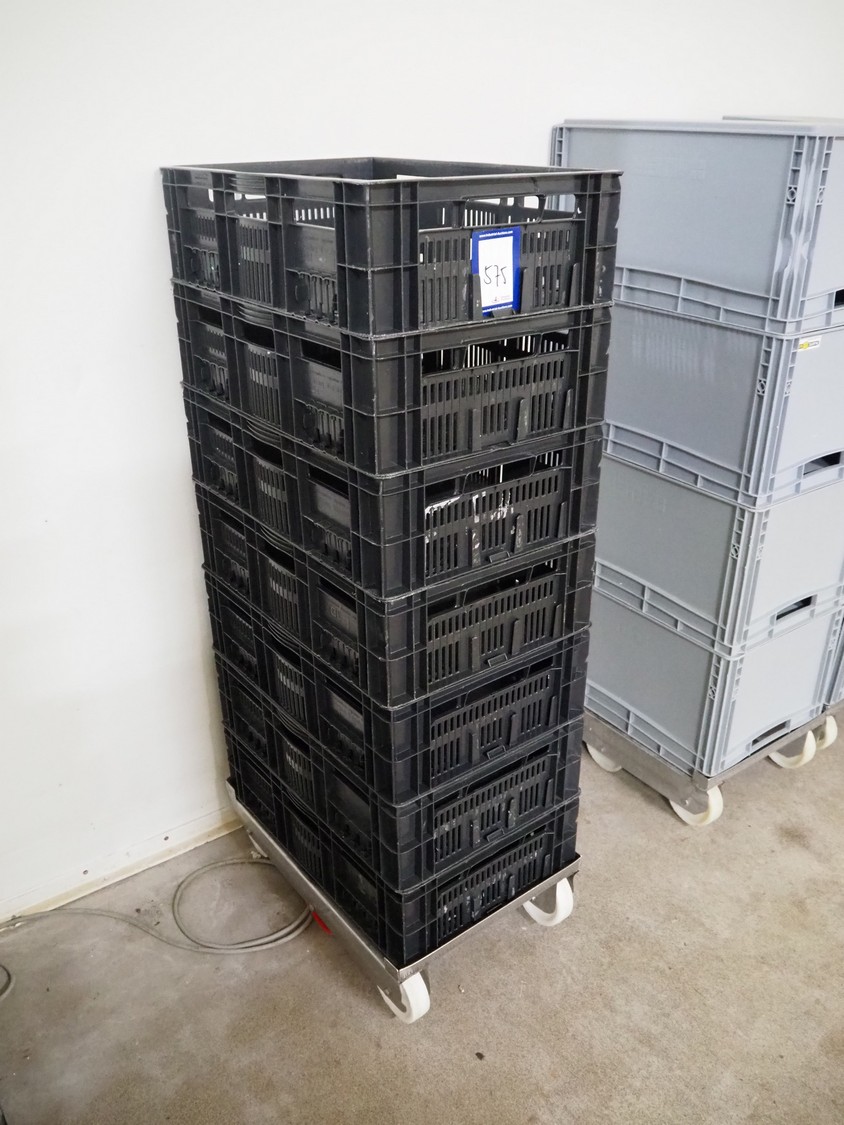 S/s rollie with 7 plastic crates, dimensions crates: 600 mm x 400 mm x 170 mm.