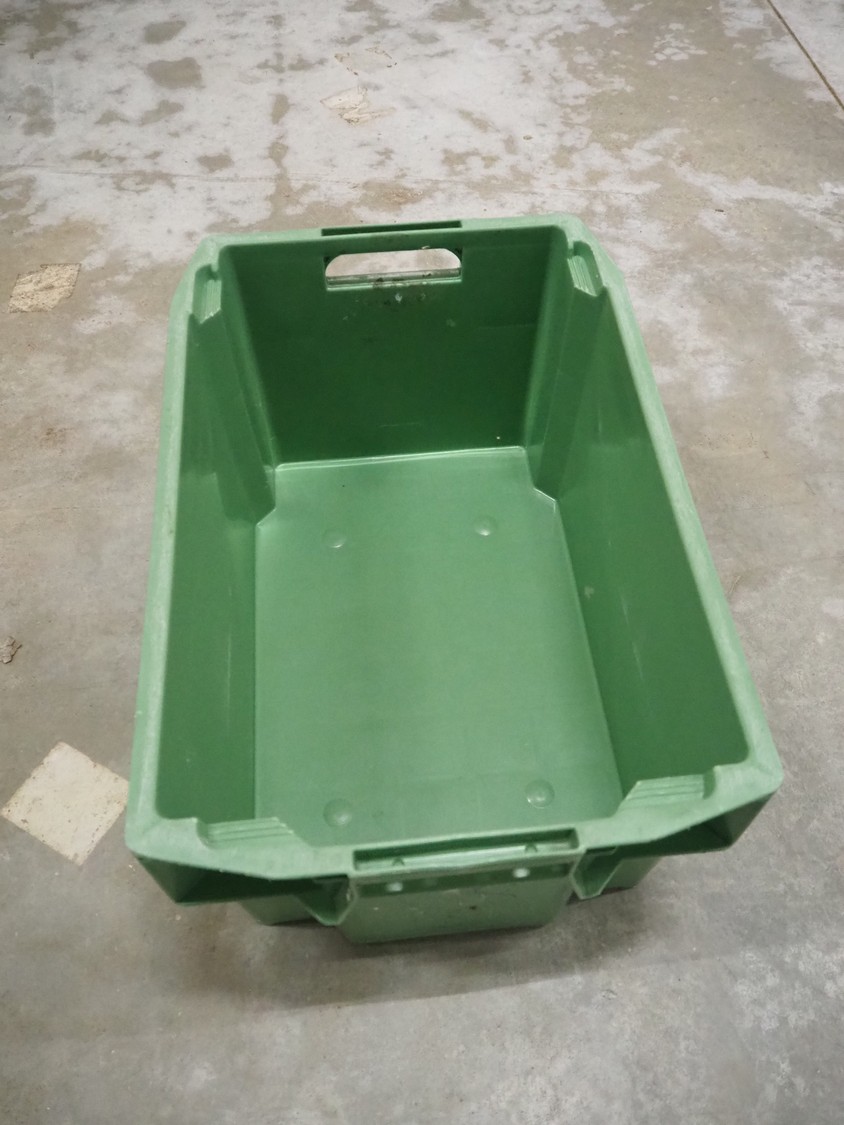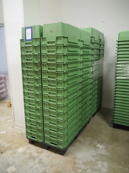 2 pallets with approximately 116 plastic crates, dimensions crates: 600 mm x 400 mm x 300 mm.