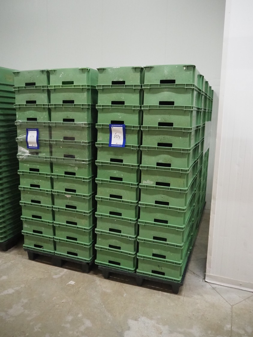 4 pallets with approximately 176 plastic crates, dimensions crates: 600 mm x 400 mm x 170 mm.