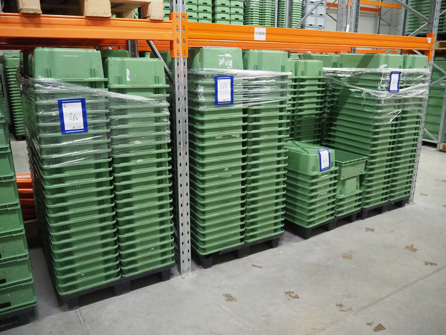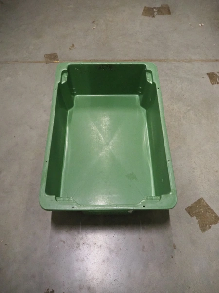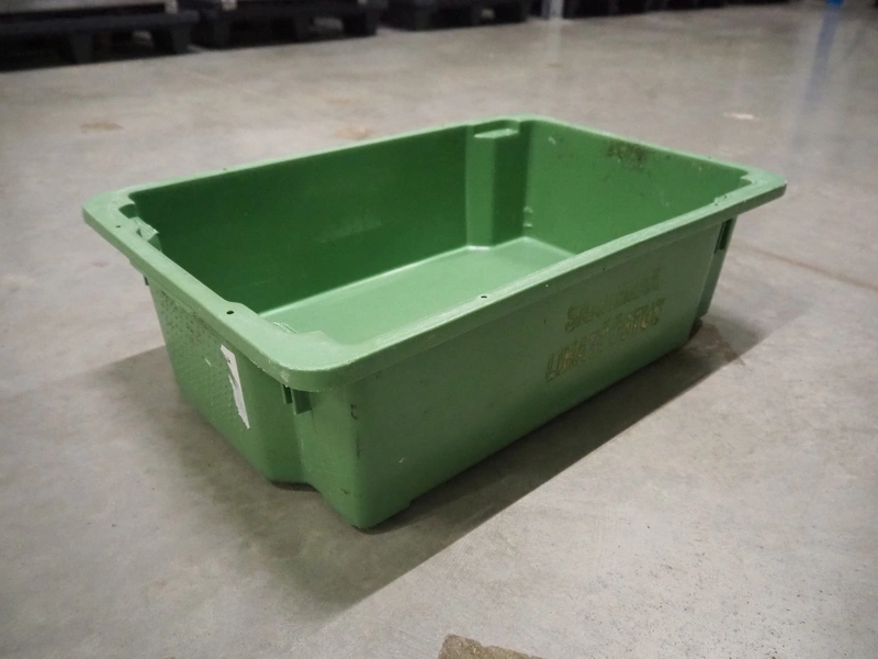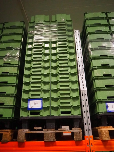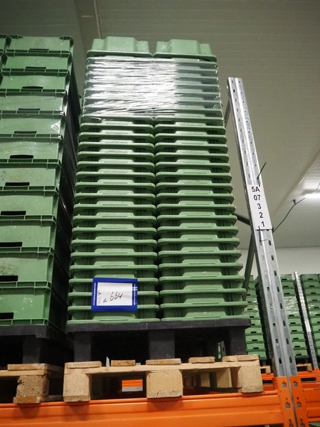 6 pallets with approximately 500 plastic crates, dimensions crates: 600 mm x 400 mm x 180 mm.
