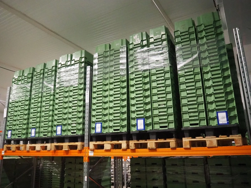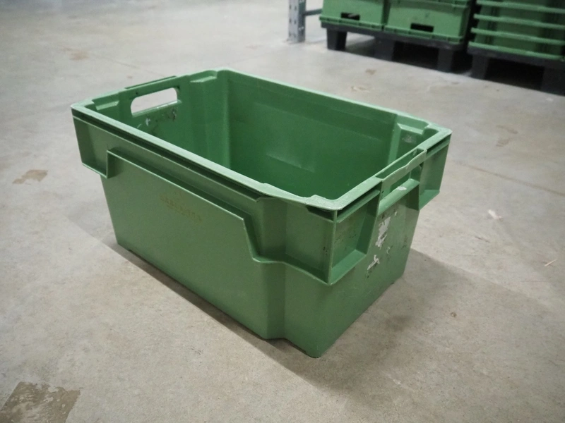 6 pallets with approximately 336 plastic crates, dimensions crates: 600 mm x 400 mm x 320 mm.