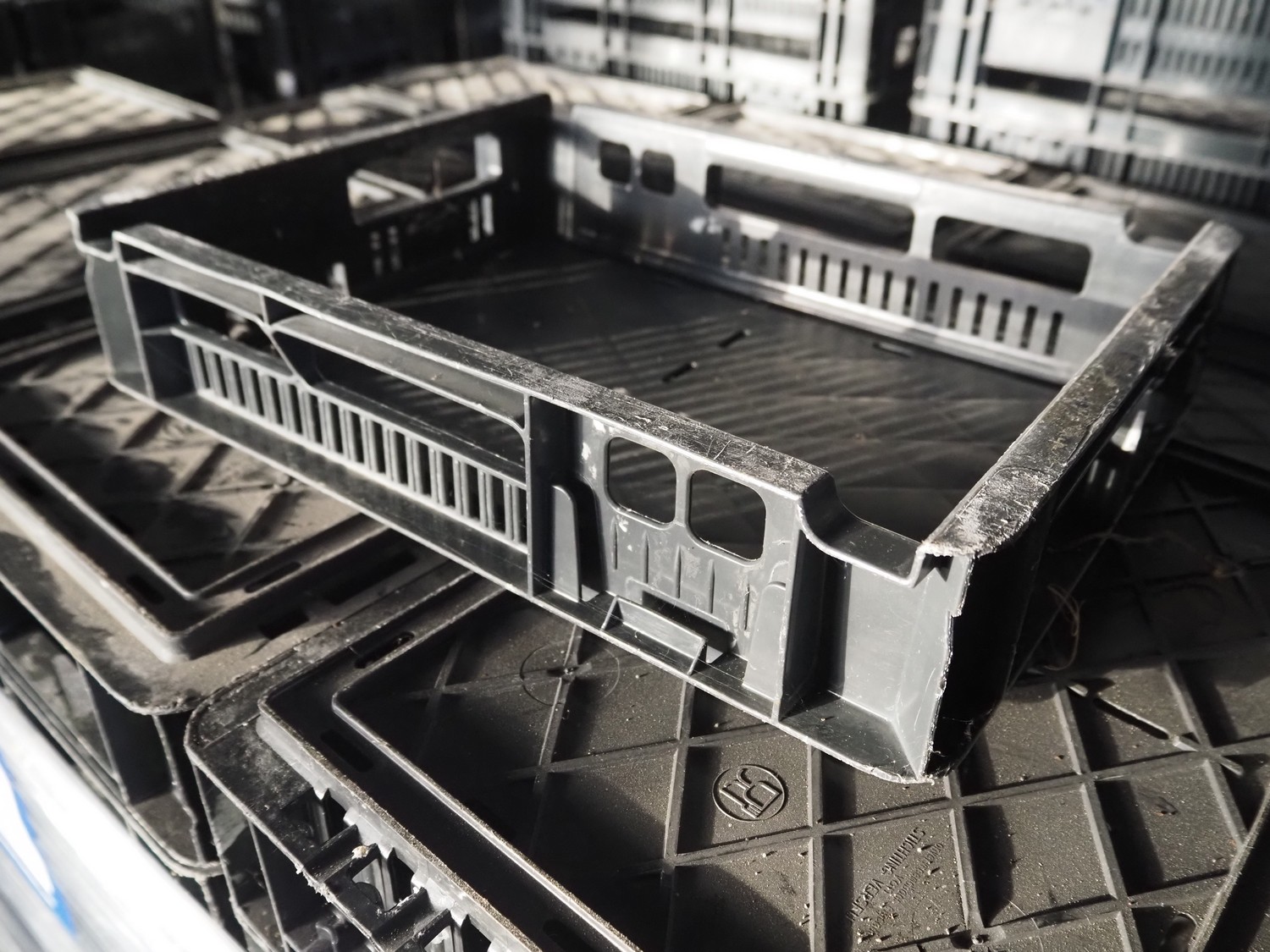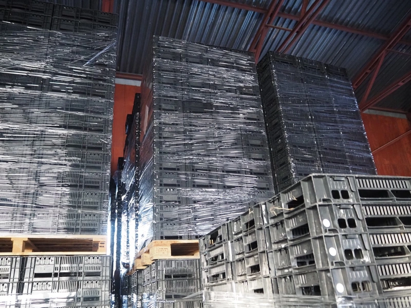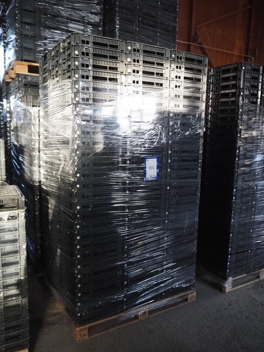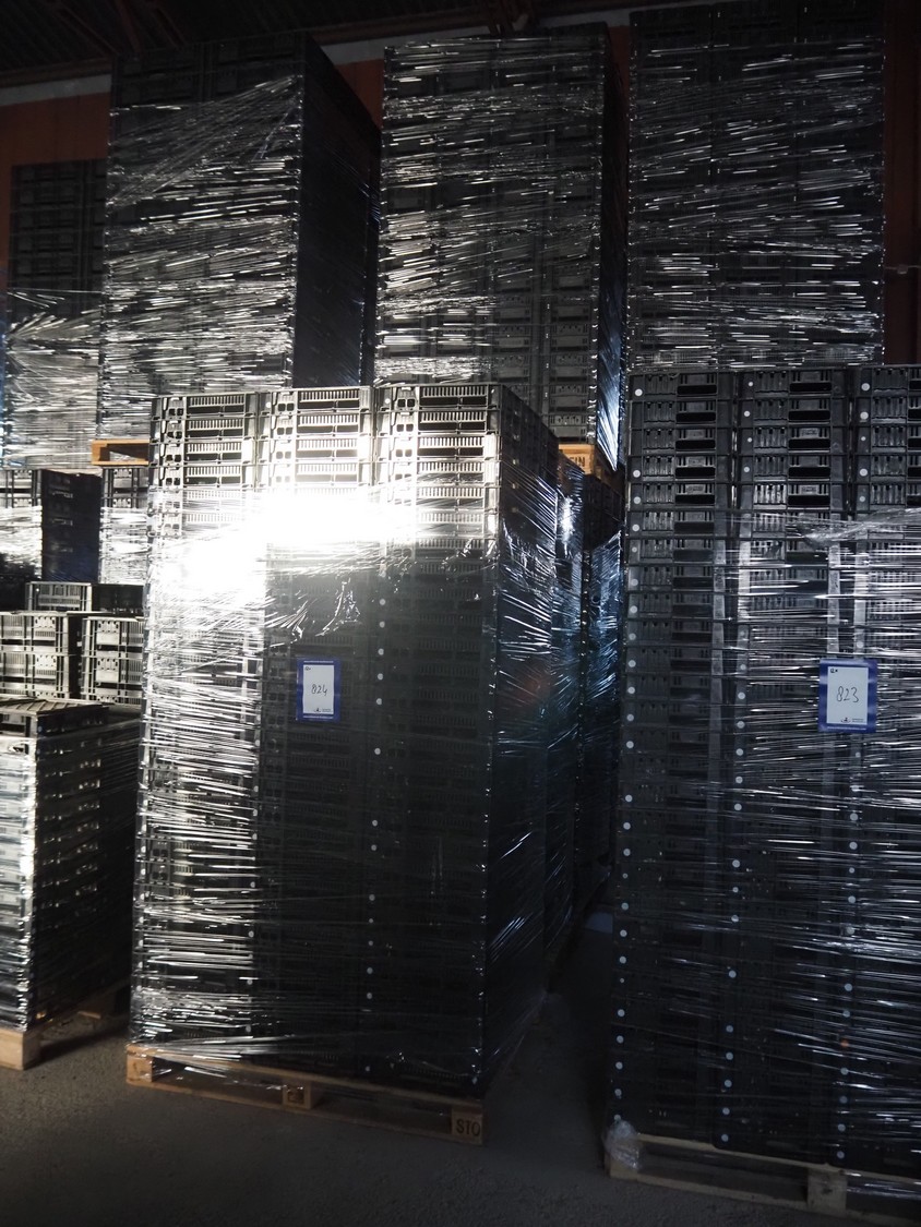 12 pallets with approximately 3360 plastic crates, dimensions crates: 400 mm x 300 mm x 90 mm.