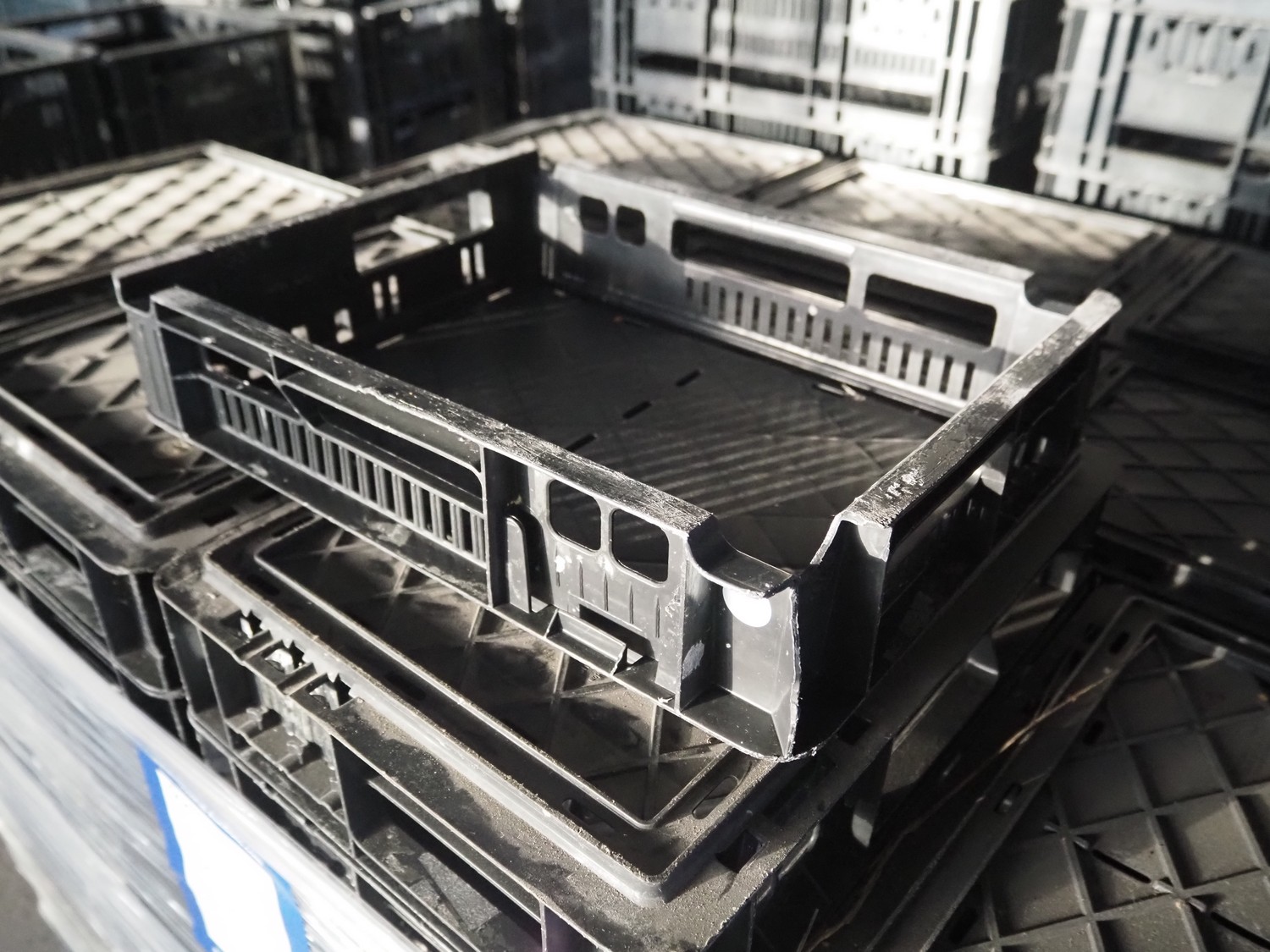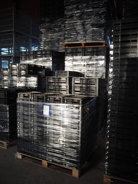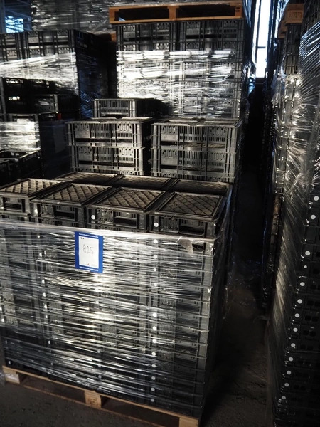 12 pallets with approximately 1980 plastic crates, dimensions crates: 600 mm x 400 mm x 130 mm.