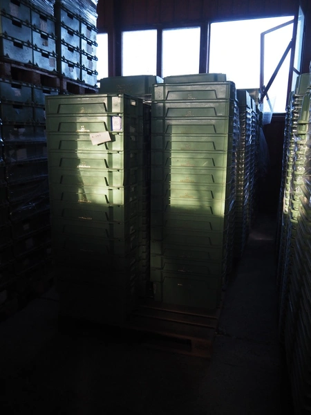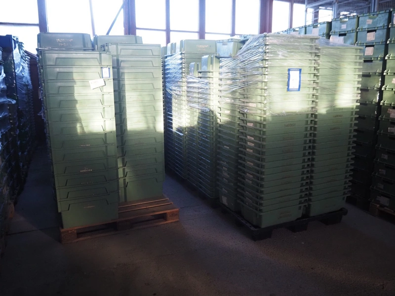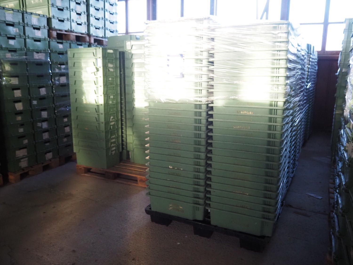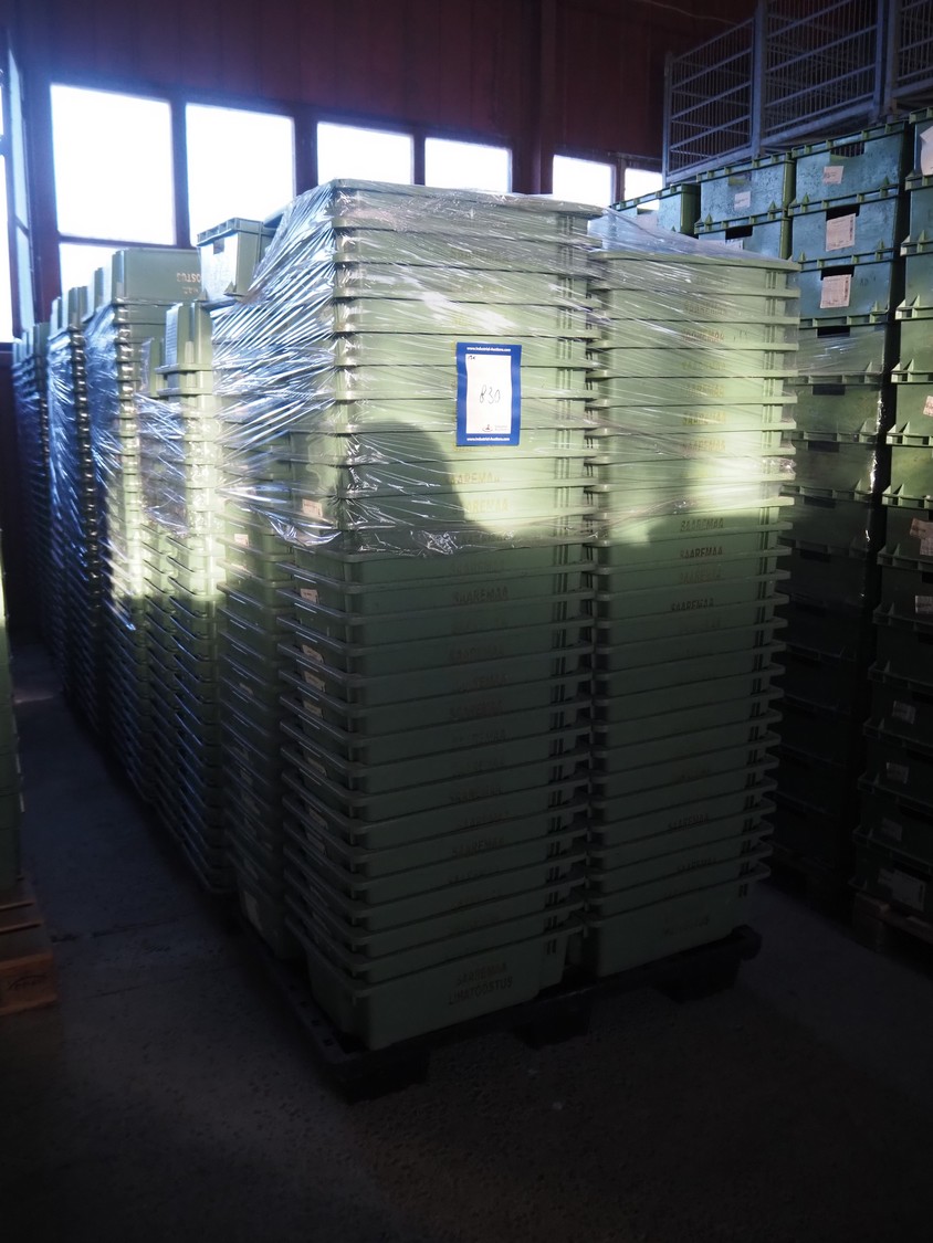 13 pallets with approximately 1456 plastic crates, dimensions crates: 600 mm x 400 mm x 180 mm.