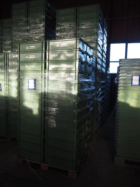 10 pallets with approximately 520 plastic crates, dimensions crates: 600 mm x 400 mm x 170 mm.
