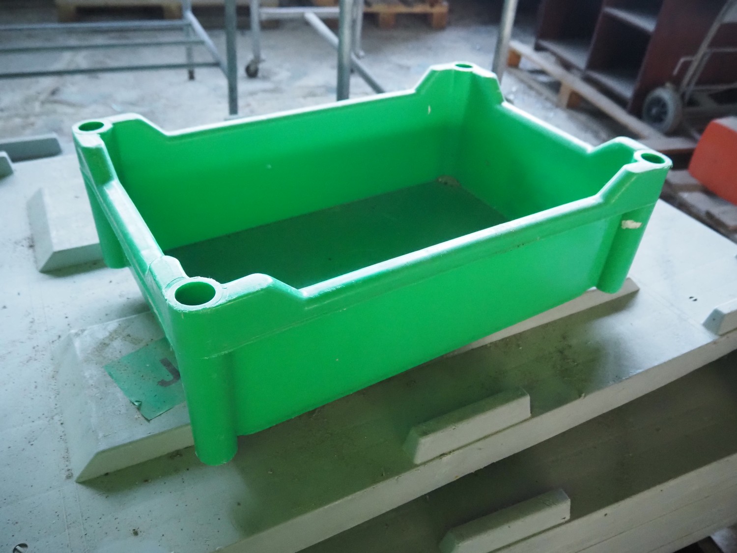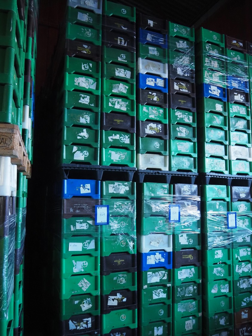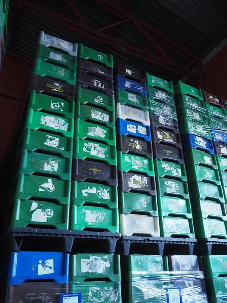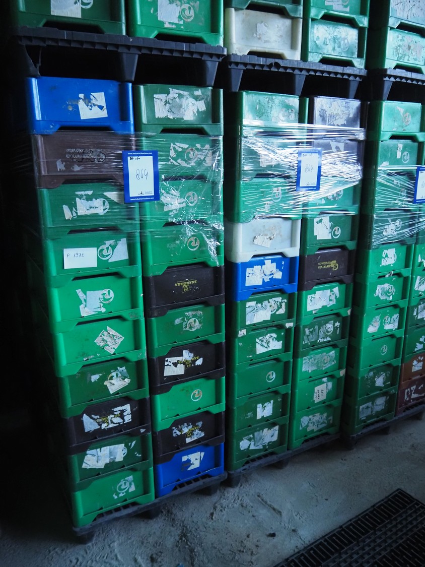 16 pallets with approximately 640 plastic crates, dimensions crates: 585 mm x 385 mm x 180 mm.