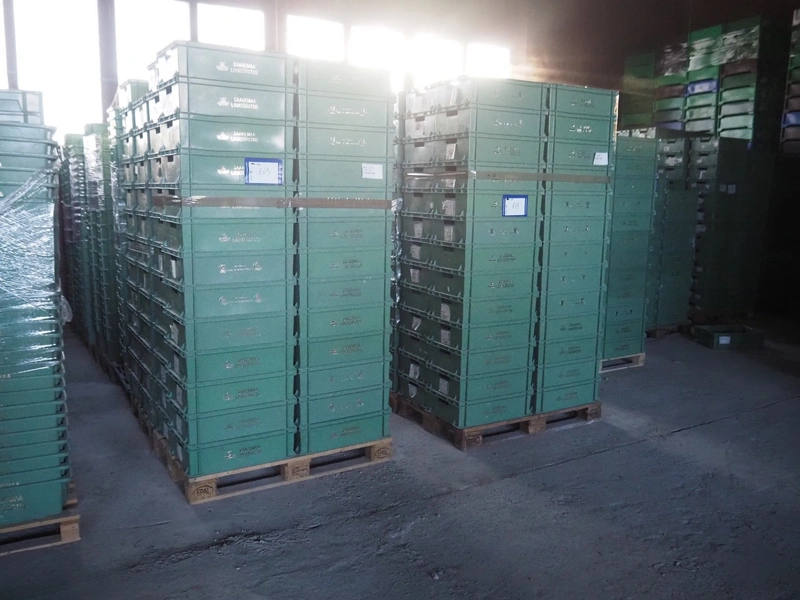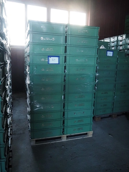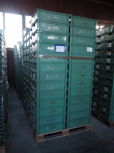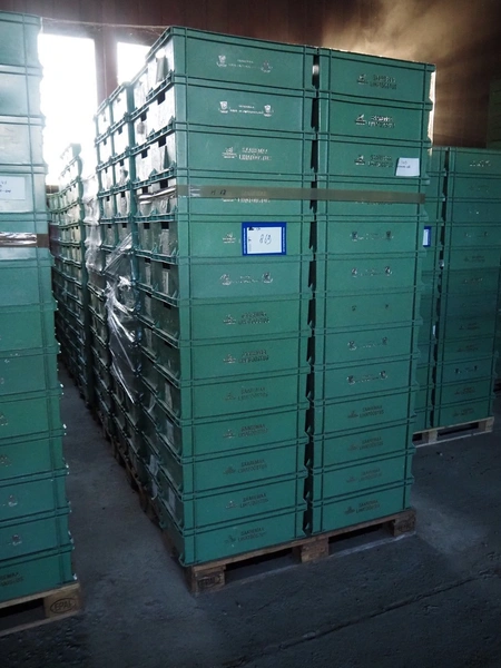 17 pallets with approximately 952 plastic crates, dimensions crates: 600 mm x 400 mm x 170 mm.