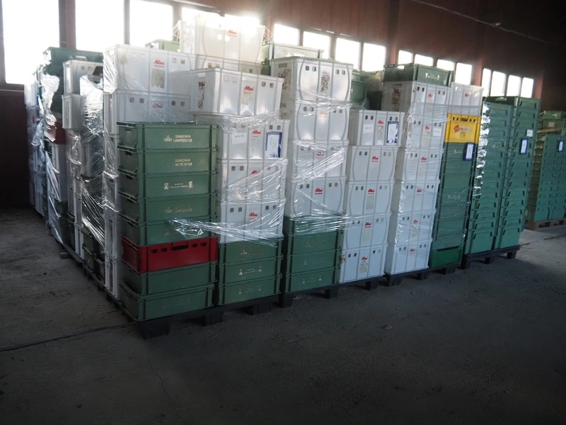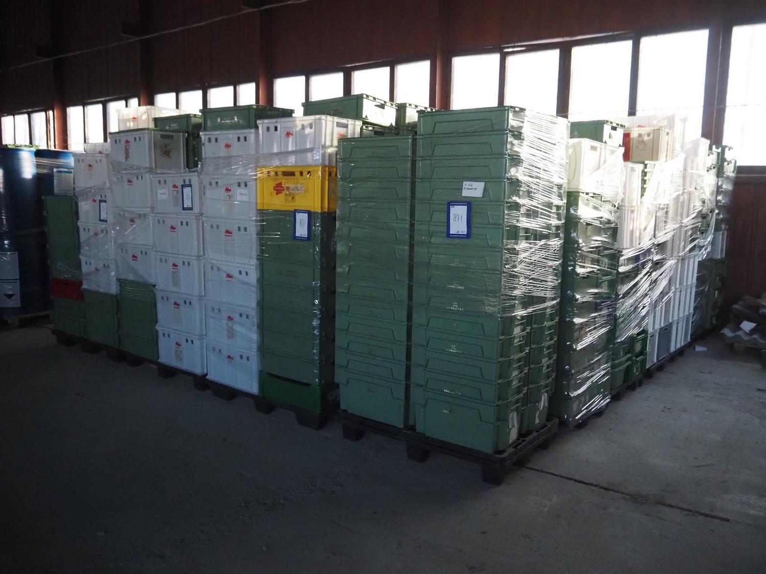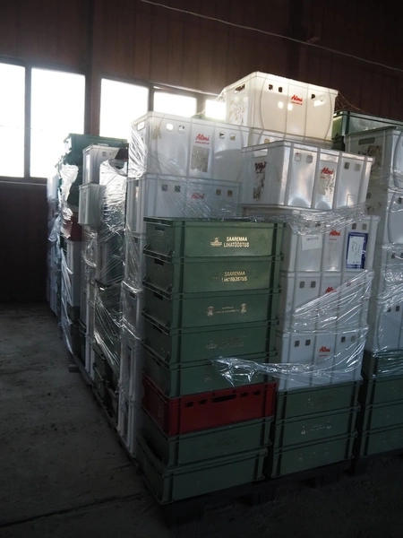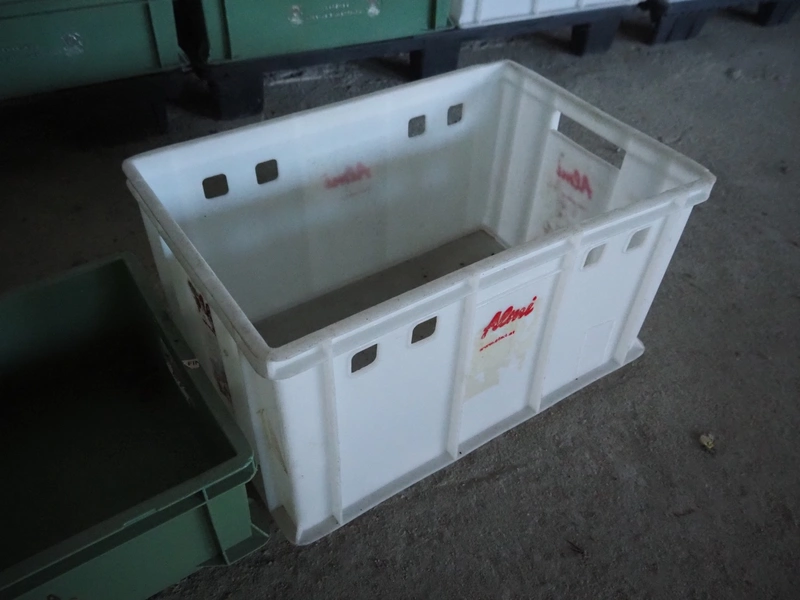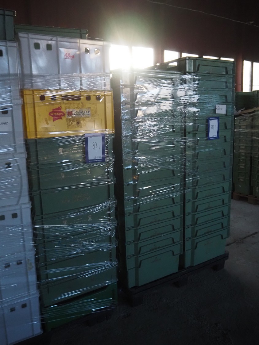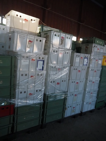 28 pallets with approximately 1120 plastic crates, dimensions crates: 600 mm x 400 mm x 170 mm, 600 mm x 400 mm x 180 mm and 600 mm x 400 mm x 320 mm.