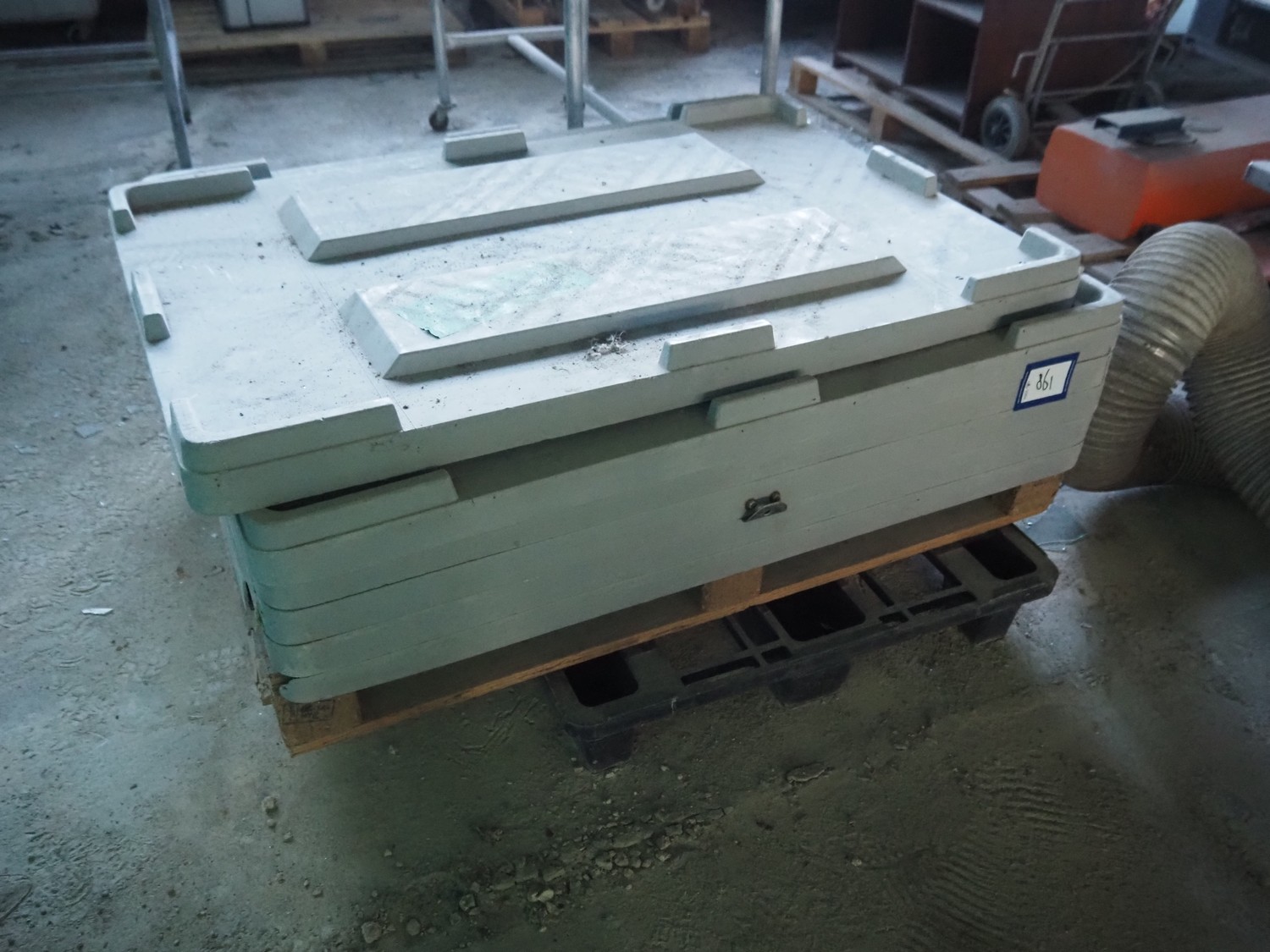 6 plastic lids for pallet box, dimensions: (5x) 1200 mm x 1000 mm and (1x) 800 mm x 1200 mm.