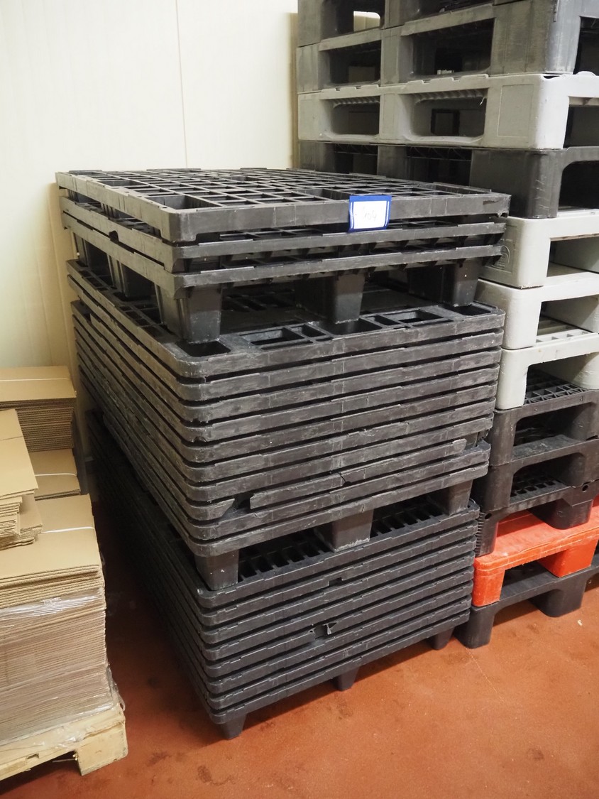 21 stackable plastic pallets, dimensions: (21x) 1200 mm x 800 mm x 150 mm.