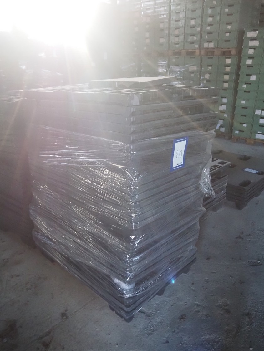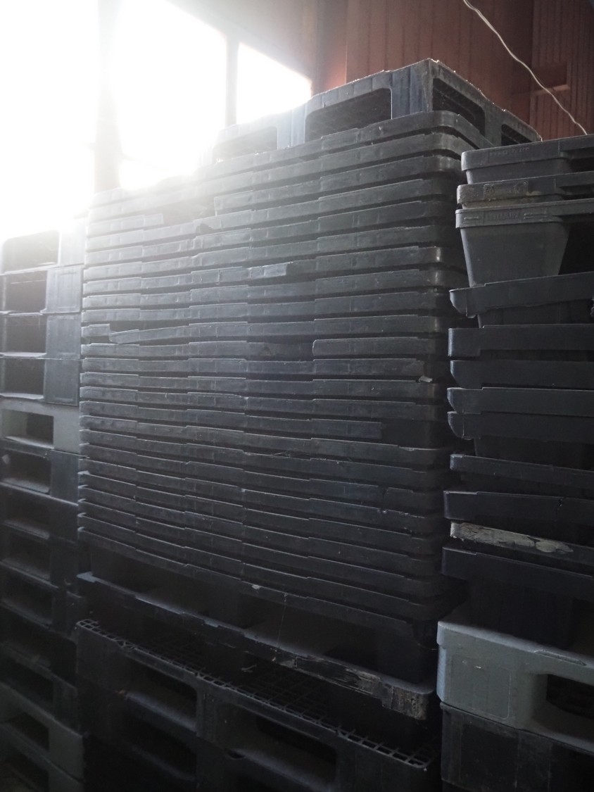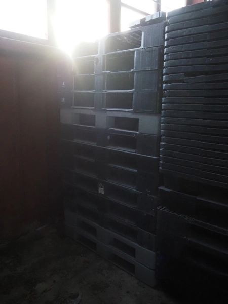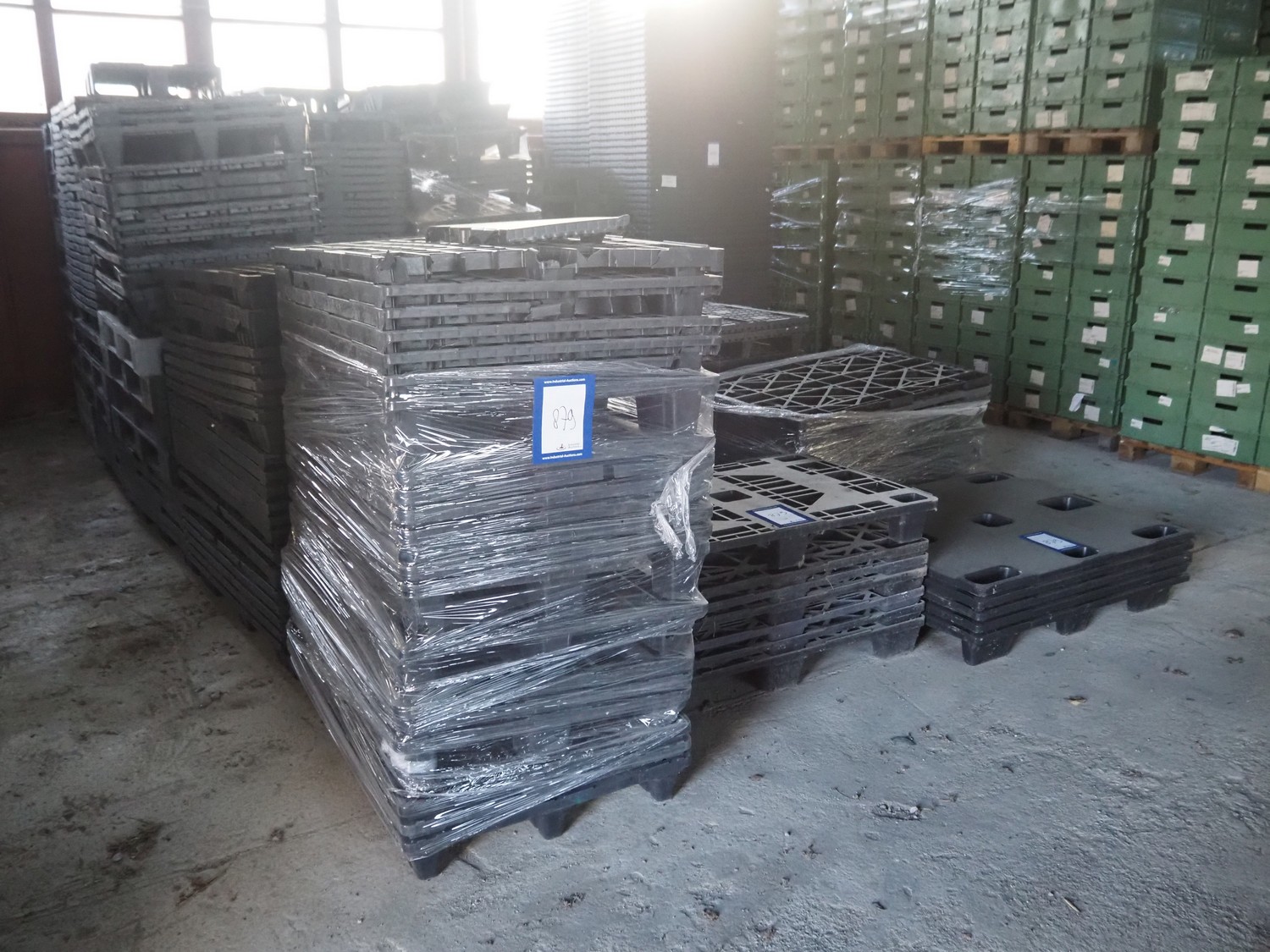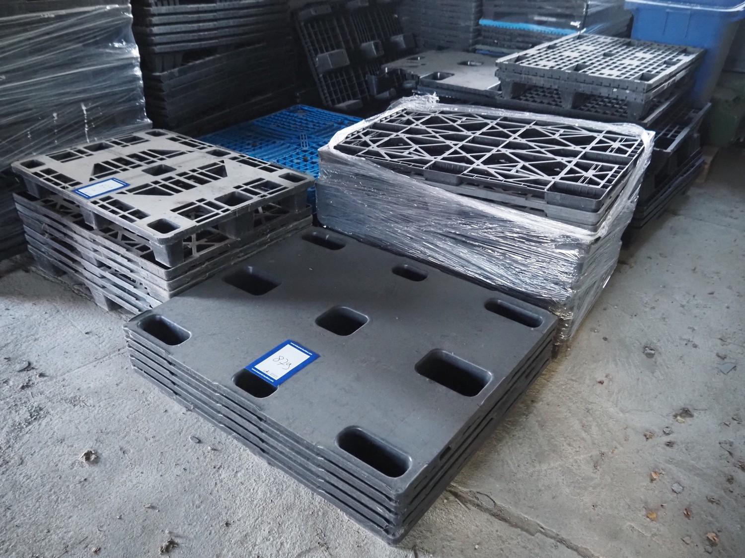 Approximately 300 plastic pallets, dimensions pallets: 1200 mm x 1000 mm x 150 mm.
