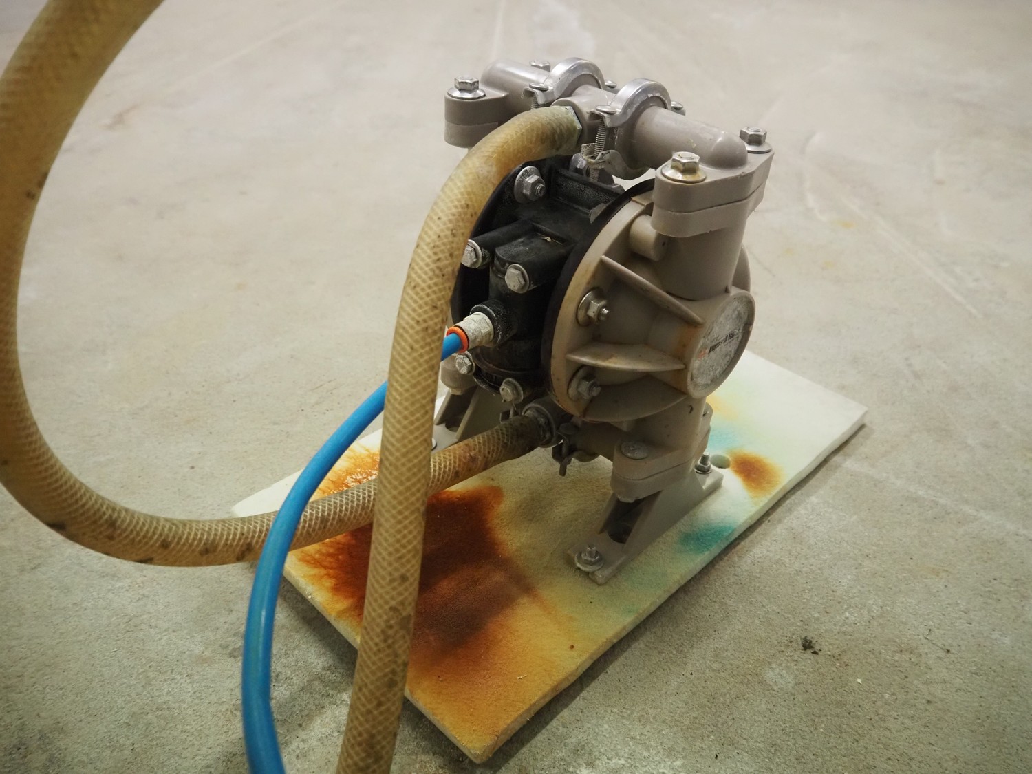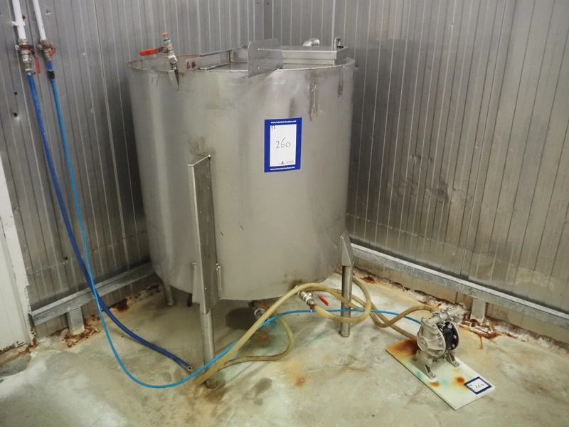 S/s brine tank, inside dimensions: Ø 920 mm x 900 mm, total dimensions: 1150 mm x 1050 mm x 1430 mm. Including membrane pump.