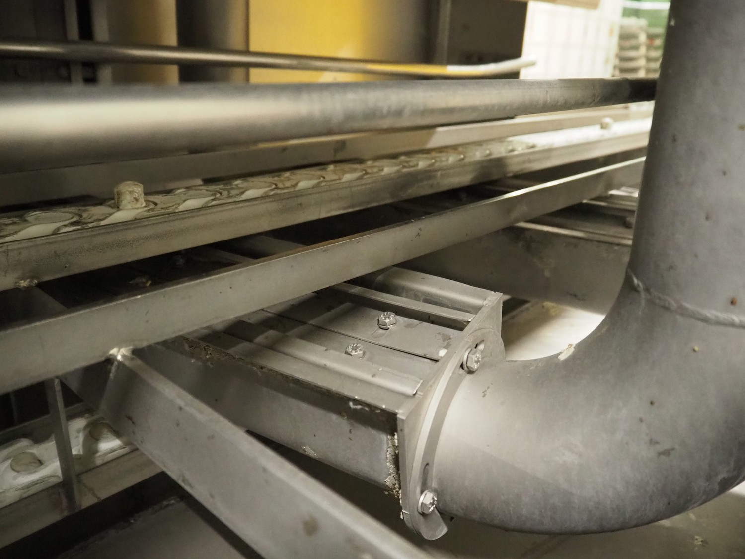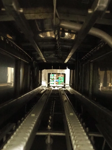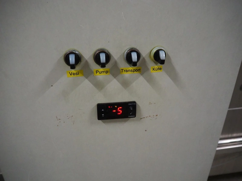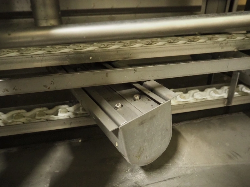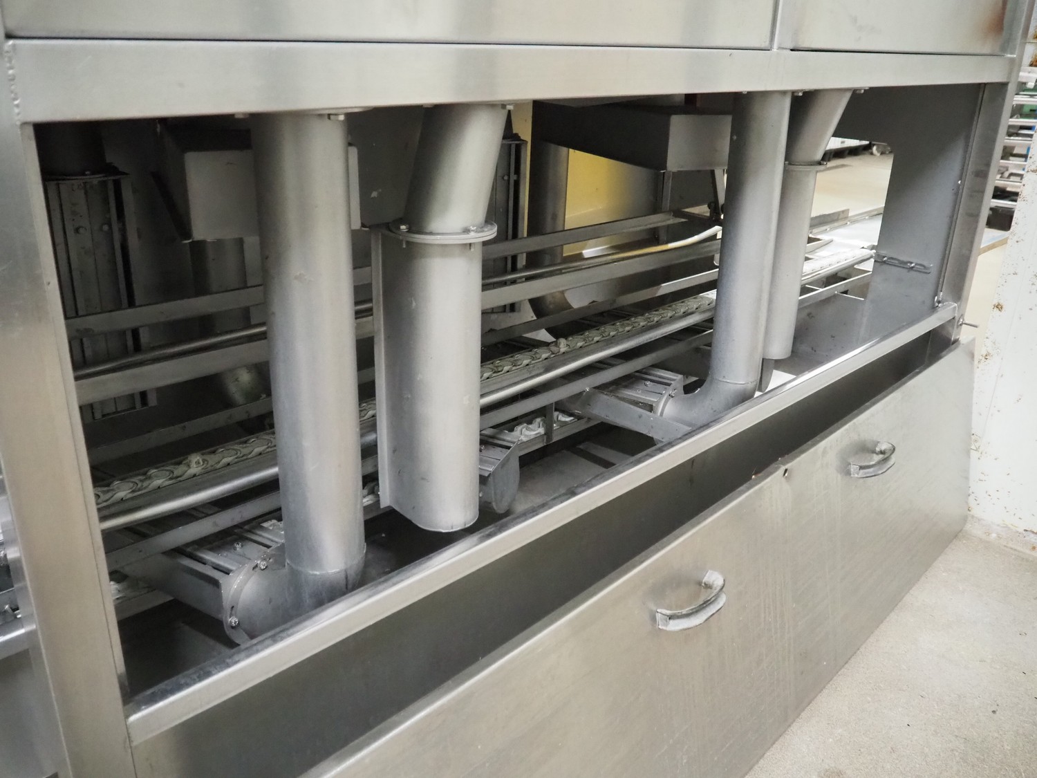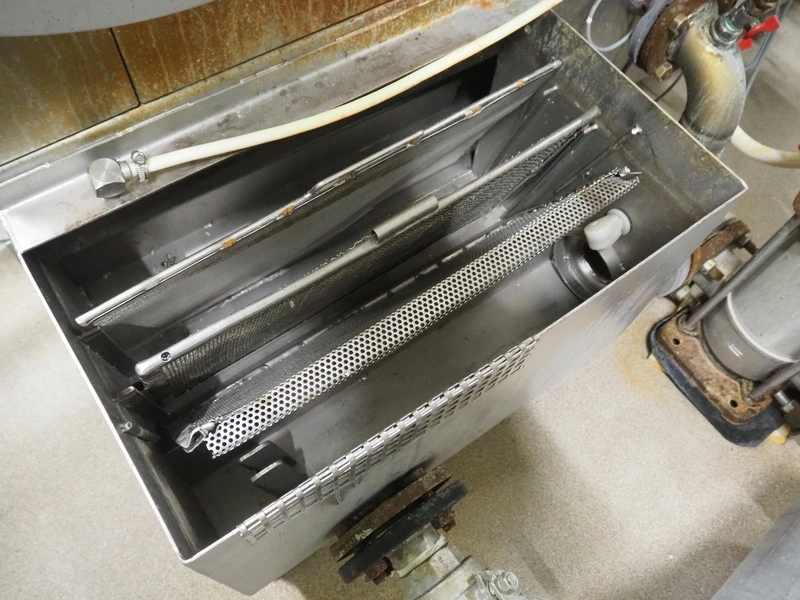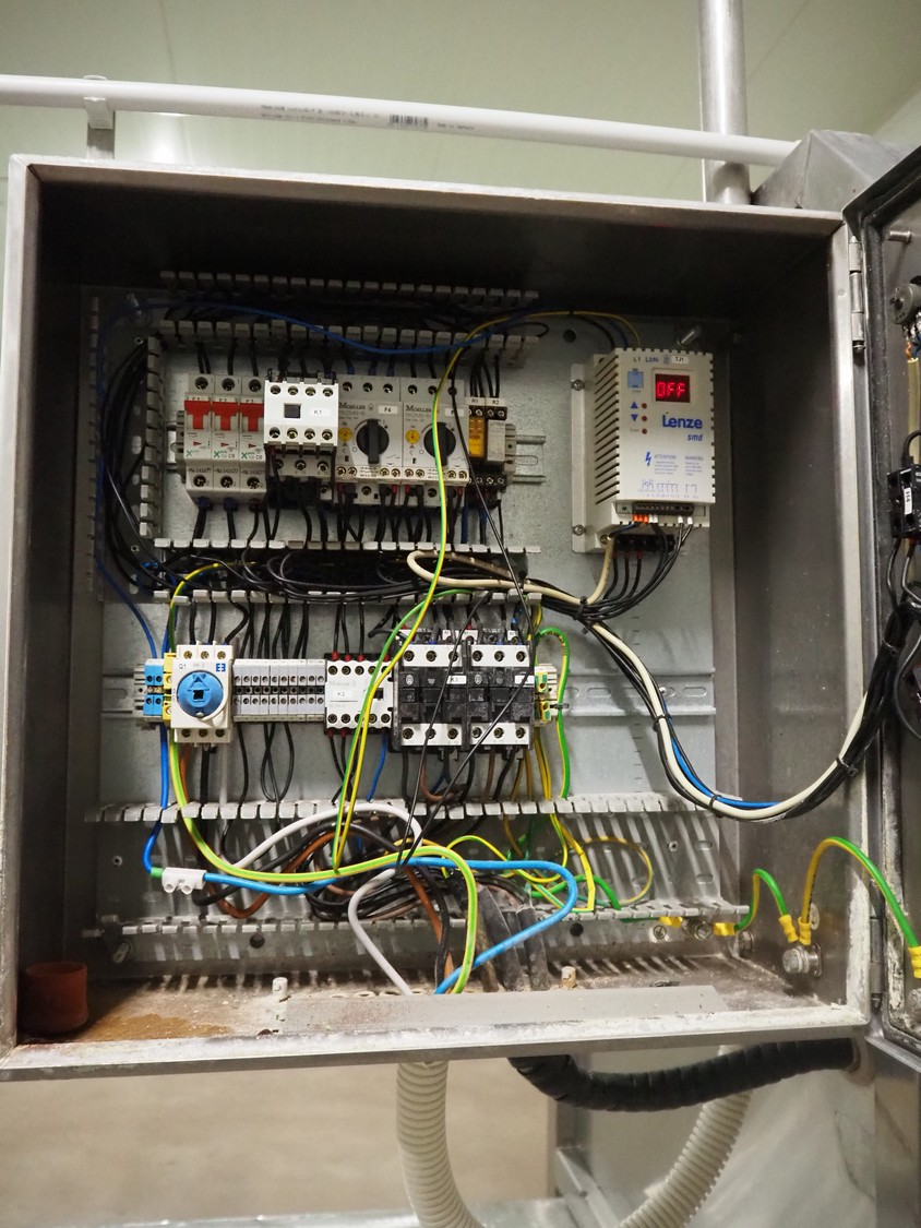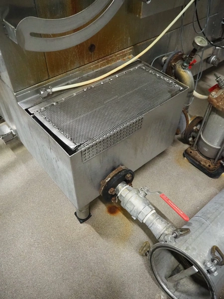 Pohjaranta OY crate washer and dryer, clearance washer: 450 mm x 380 mm, clearance dryer: 410 mm x 360 mm, total dimensions washer: 7400 mm x 1800 mm x 1100 mm, total dimensions dryer: 3800 mm x 1000 mm x 2200 mm, including Grundfos pump and s/s filter.
