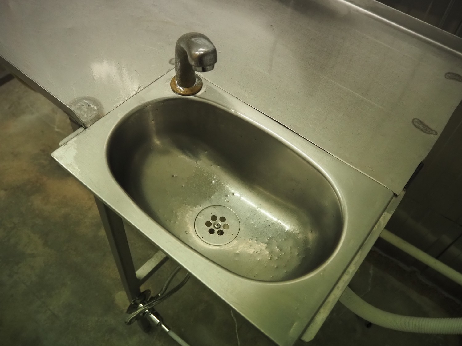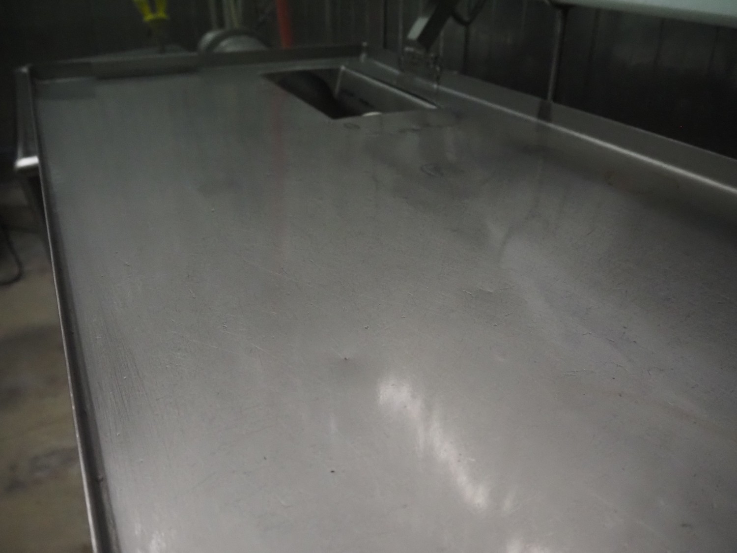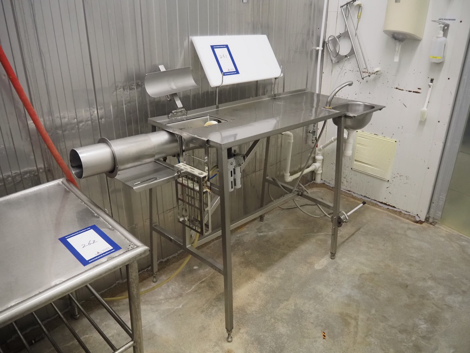 Meat press with sink and faucet, diameter chamber: 120 mm, total dimensions: 1870 mm x 600 mm x 1150 mm.