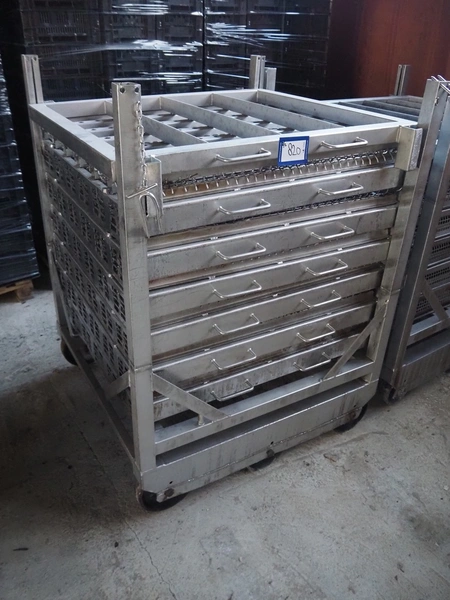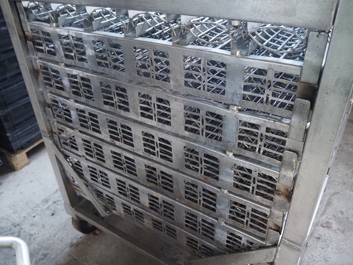 2 mobile s/s meat presses, dimensions: (2x) 1000 mm x 1000 mm x 1350 mm.