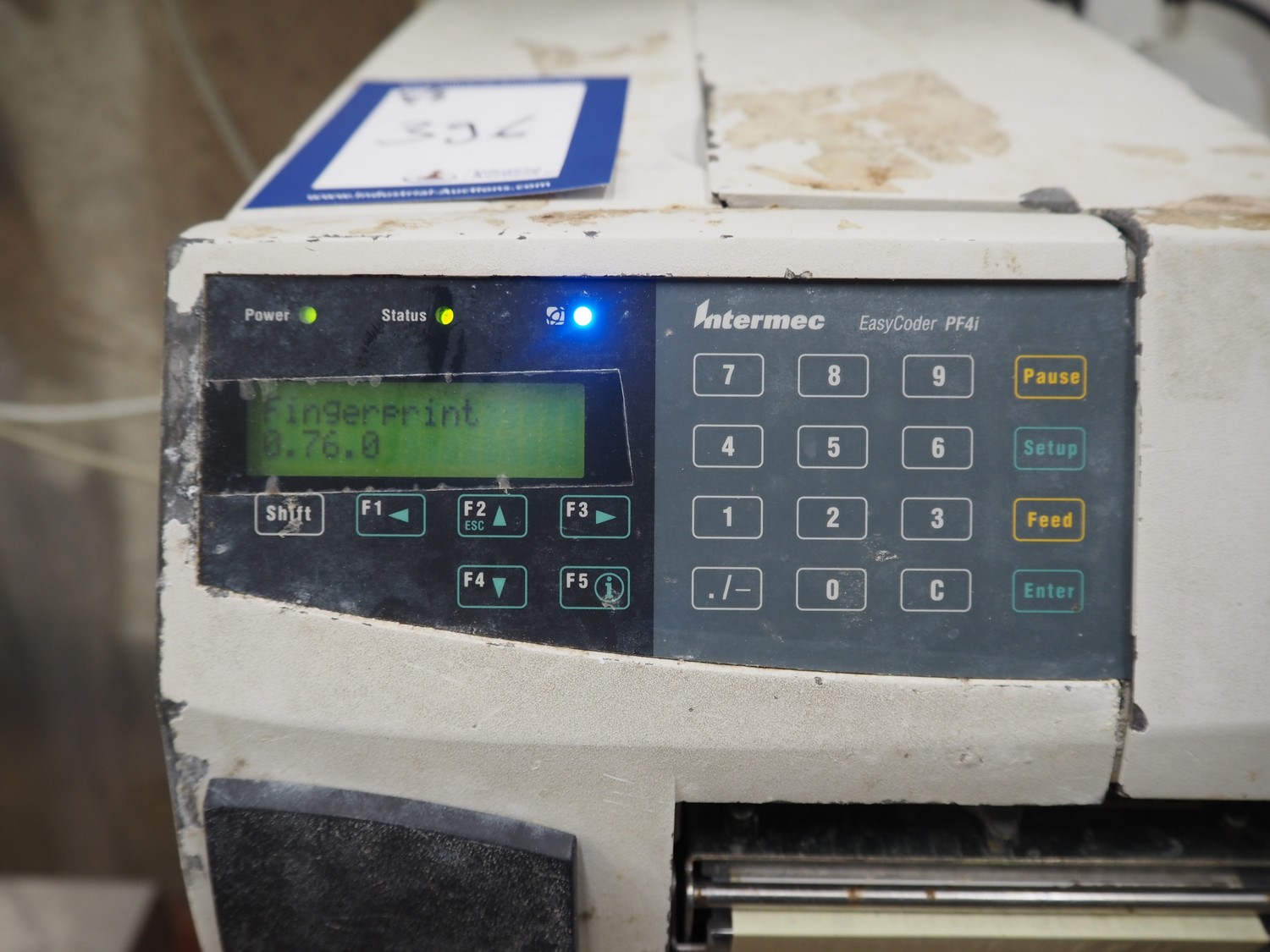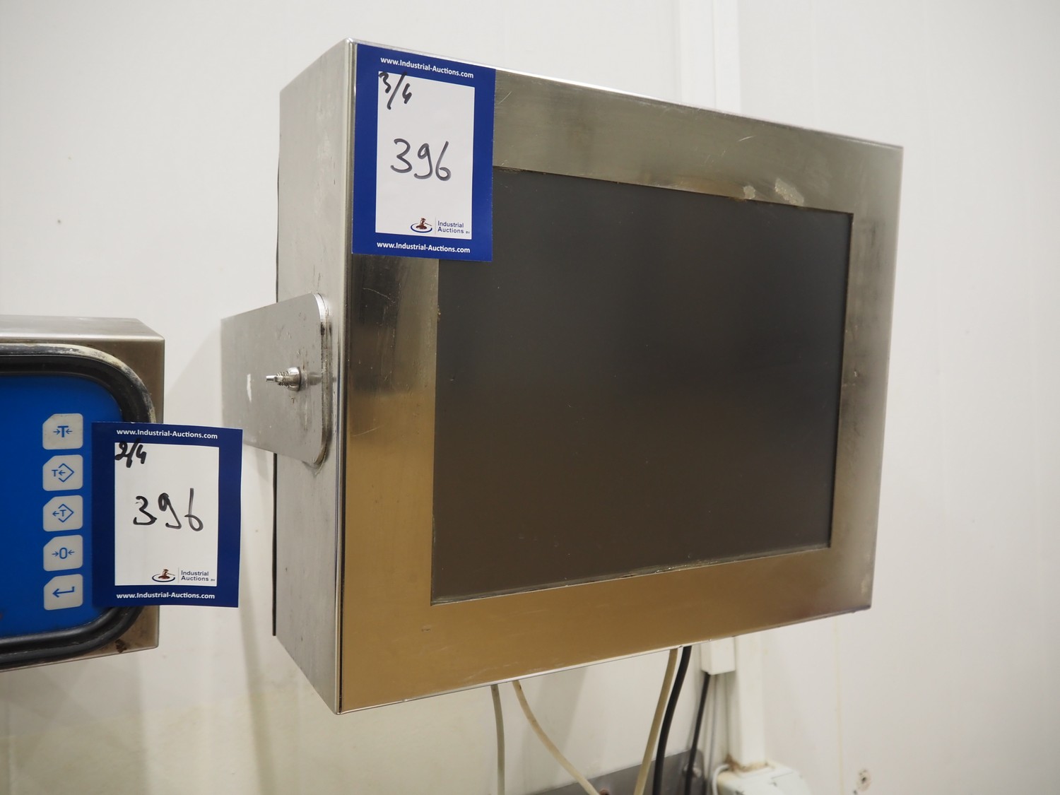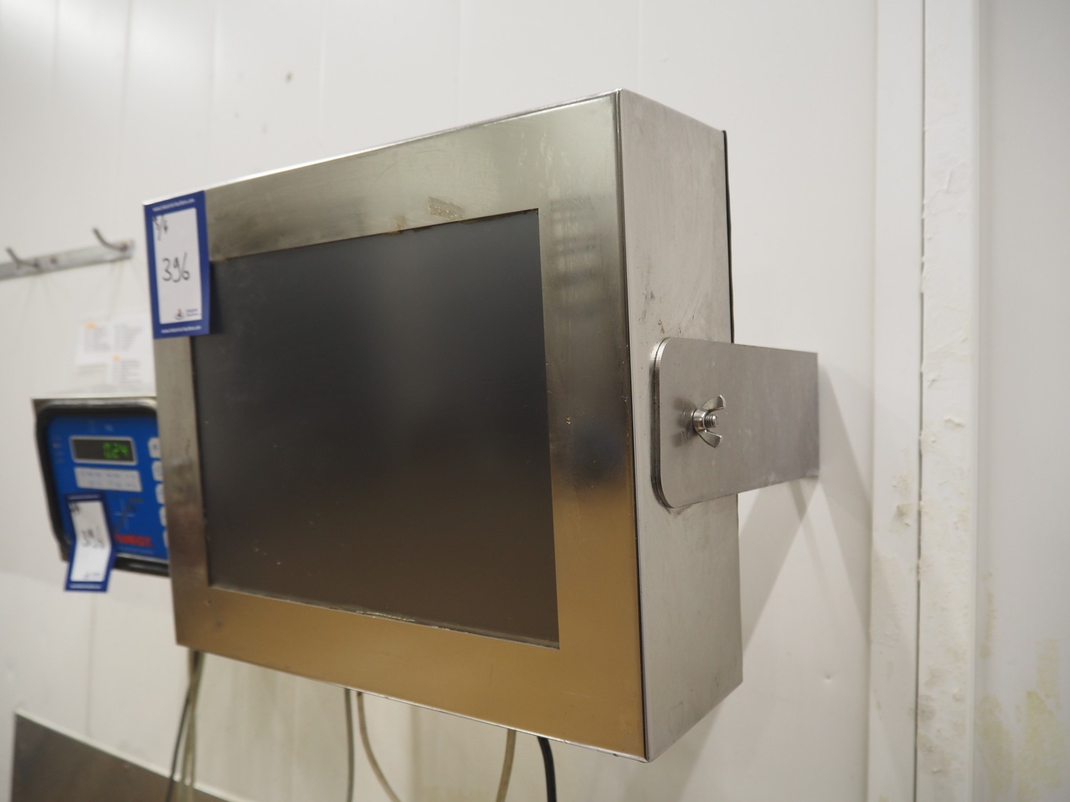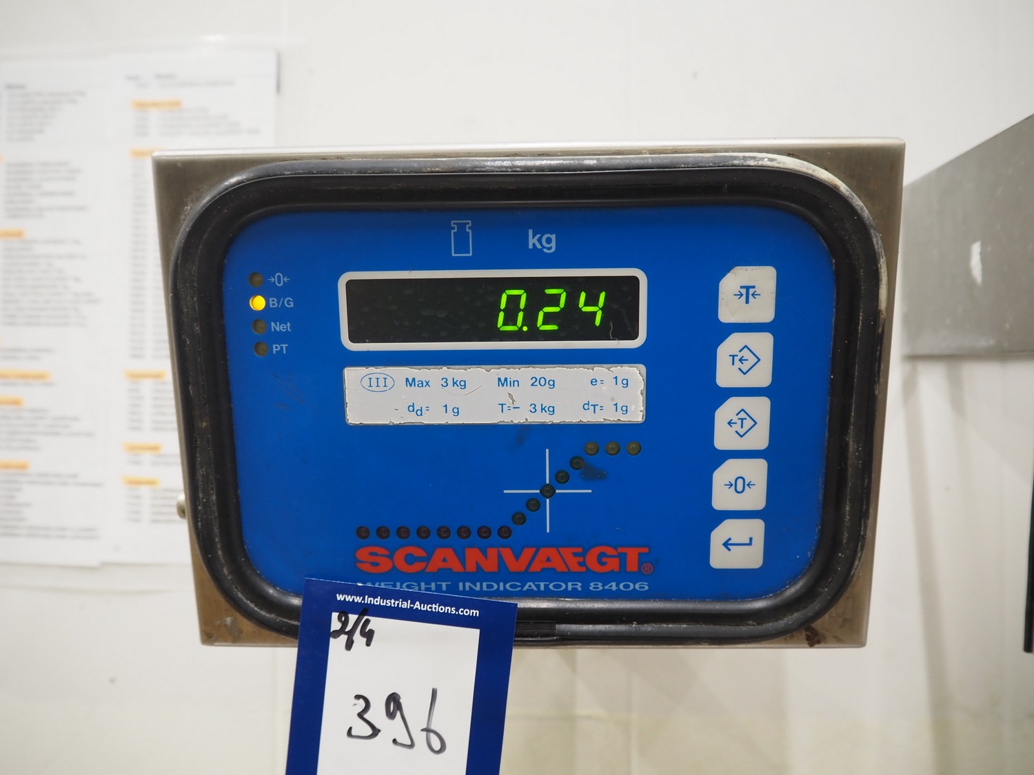 Weighing and labelling unit, consisting of: Scanvaegt weighing scale, type receptor: 1025.30.43, serial number: 97452695, max: 60 kg, min: 400 gram, e=d= 20 gram, dimensions: 600 mm x 500 mm x 660 mm, type indicator: 842, serial number: 97452695B, year of construction: 1997, dimensions: 250 mm x 200 mm x 180 mm, Scanvaegt s/s control panel, dimensions: 410 mm x 280 mm x 340 mm, Intermec label printer, model: EasyCoder PF4i, dimensions: 400 mm x 240 mm x 180 mm.