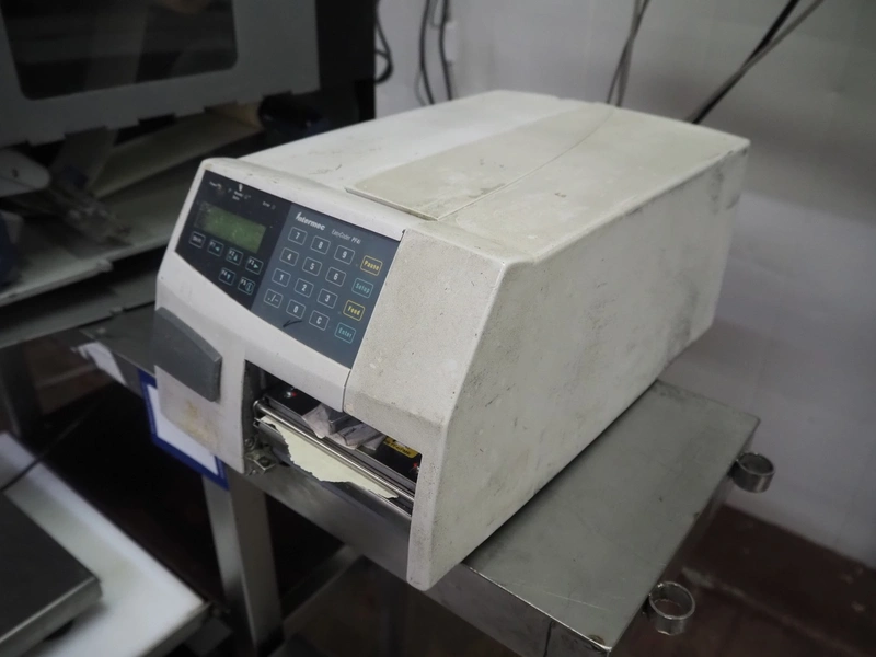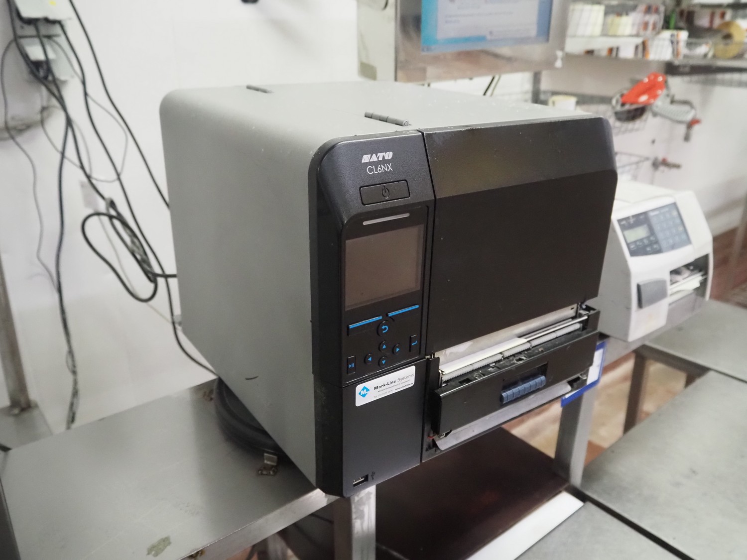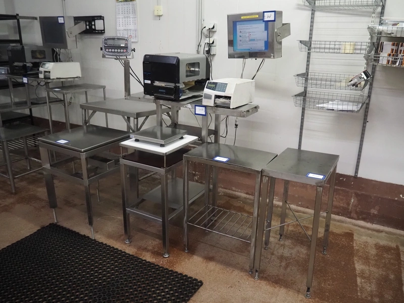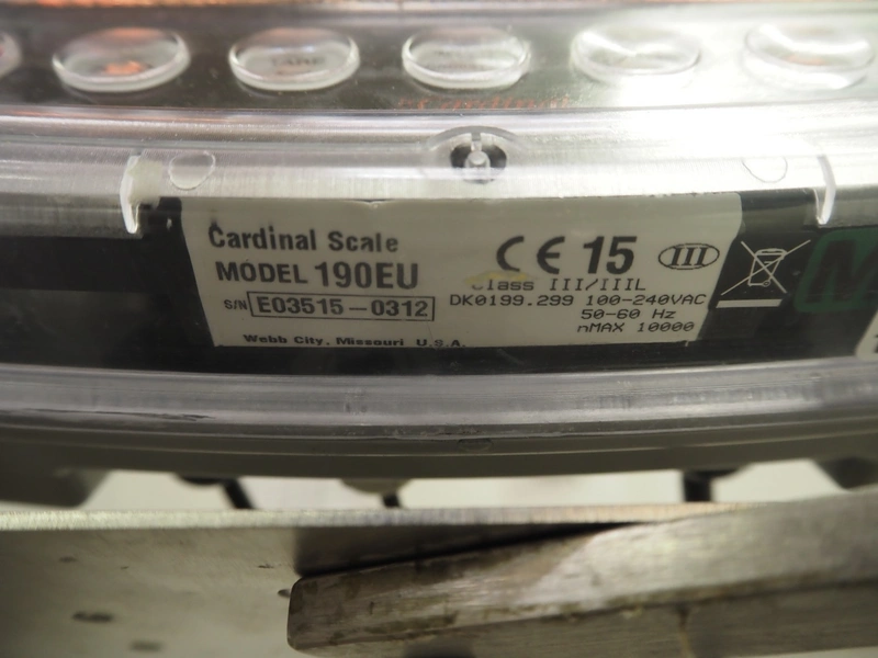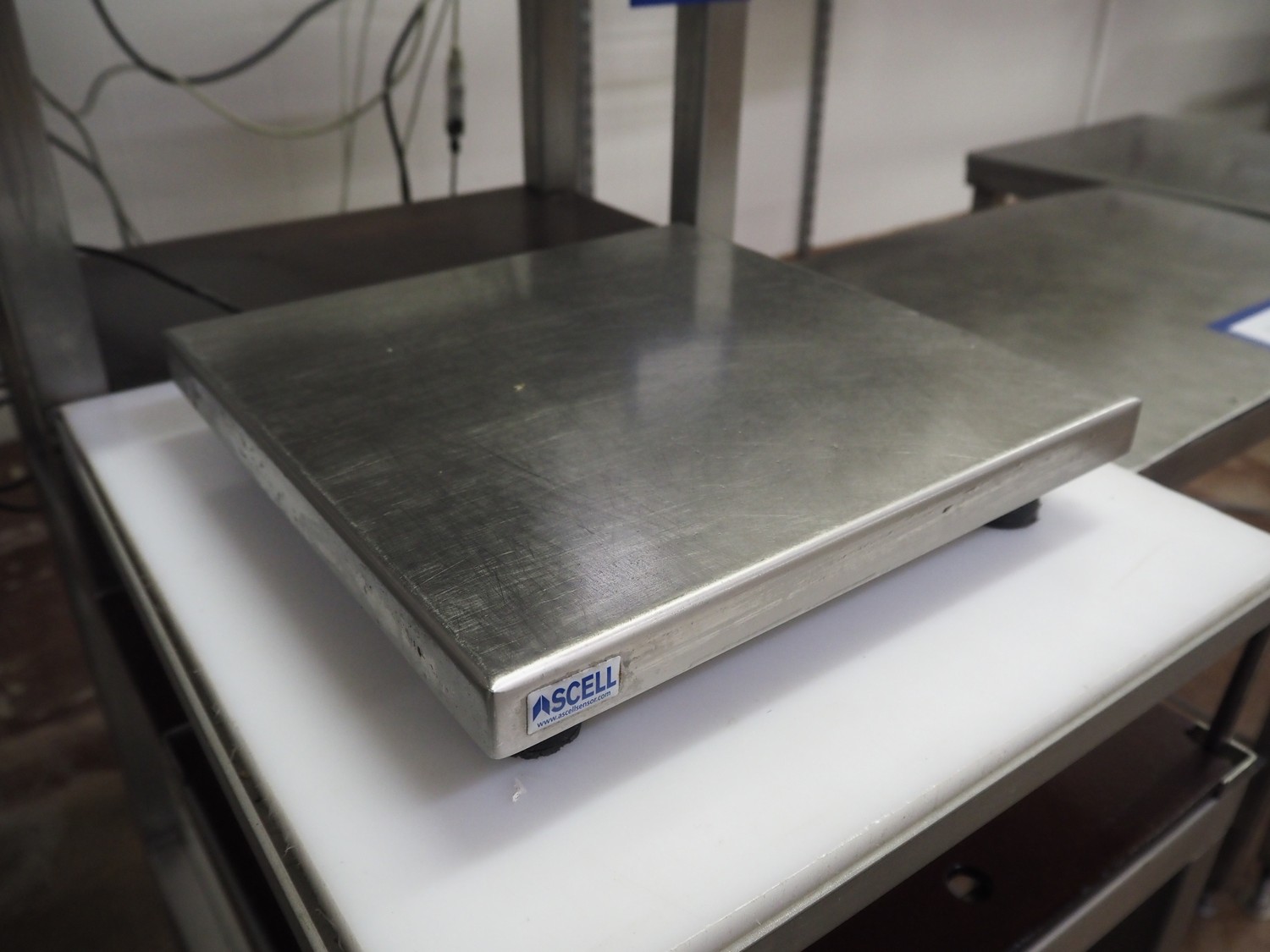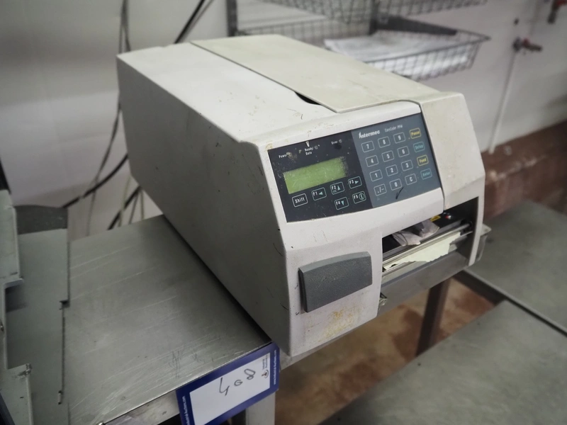 Weighing and labelling unit, consisting of: Ascell weighing scale, Cardinal Scale indicator, model: 190Eu, Sato label printer, model: CL6NX, Intermec label printer, model: PF4i, control panel and 5 s/s tables, total dimensions: 2000 mm x 1200 mm x 1540 mm.