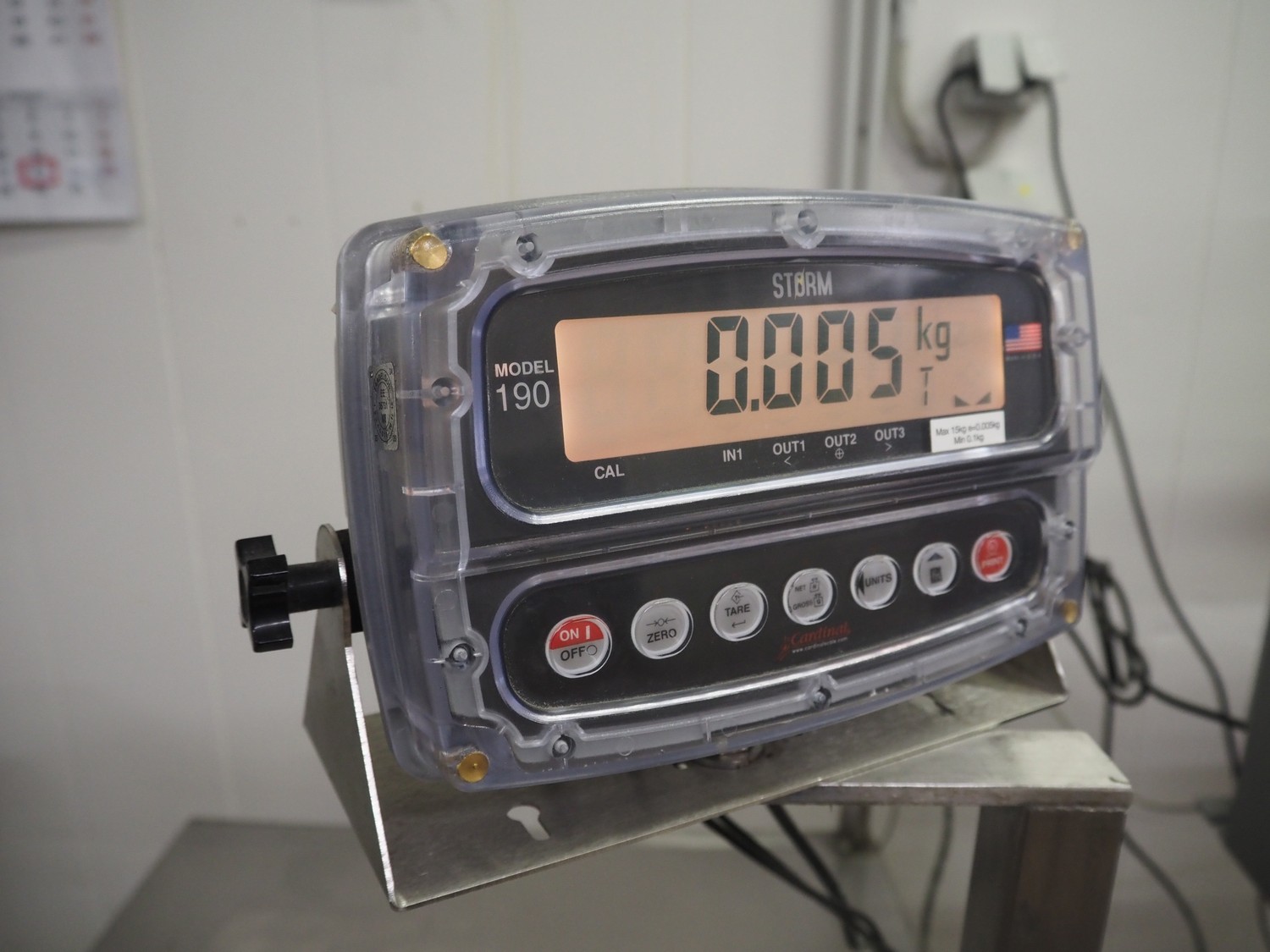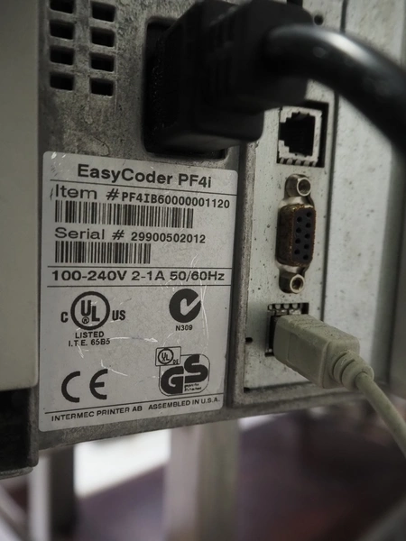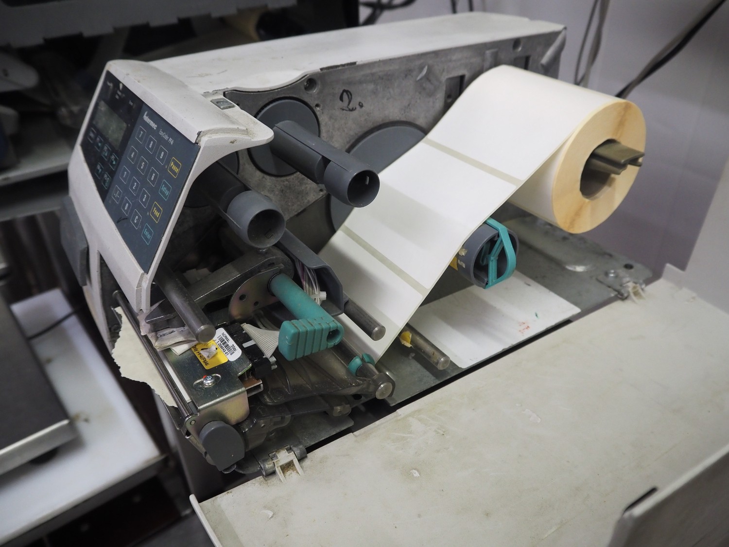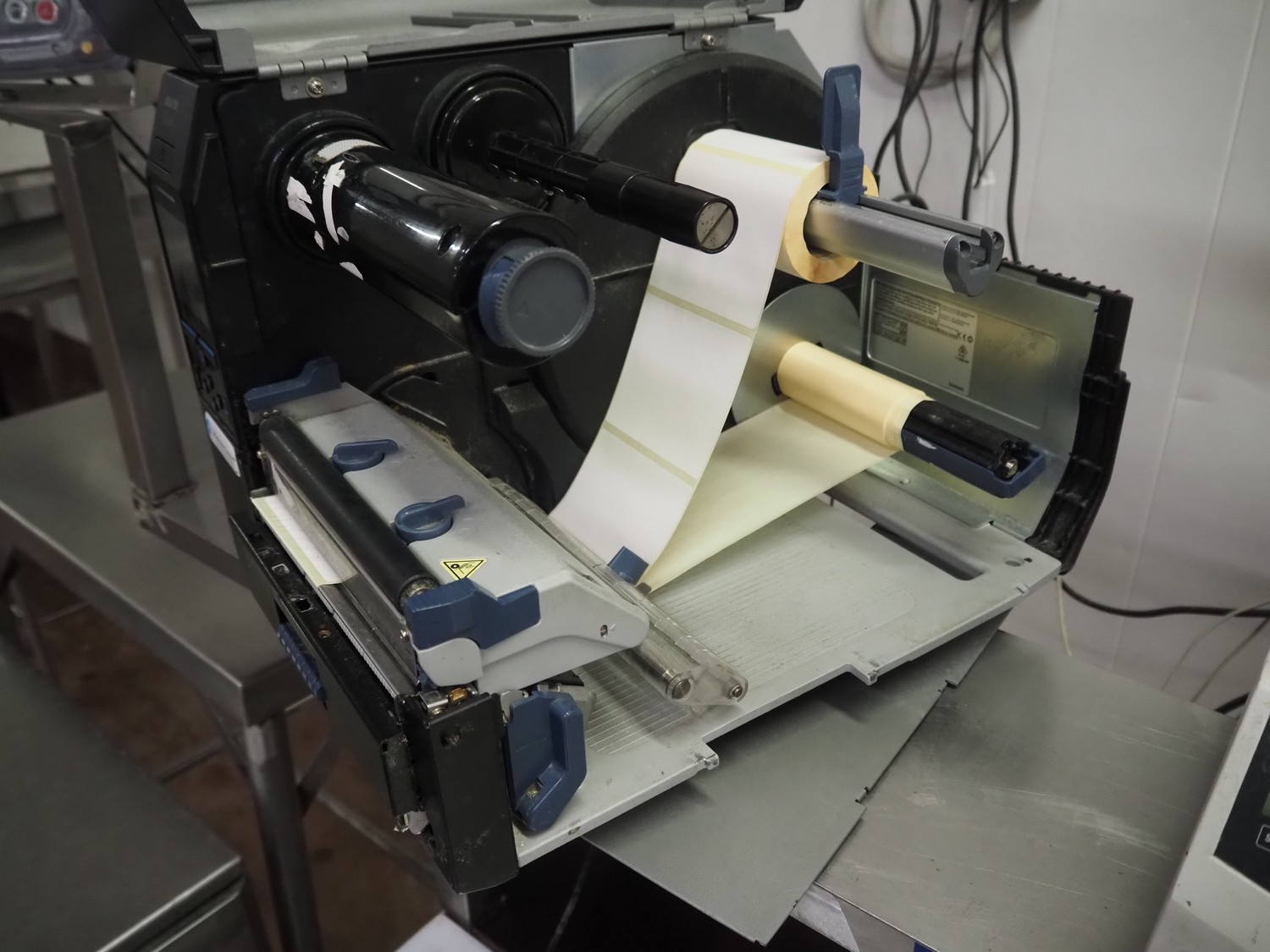 Weighing and labelling unit, consisting of: Ascell weighing scale, Cardinal Scale indicator, model: 190Eu, Sato label printer, model: CL6NX, Intermec label printer, model: PF4i, control panel and 5 s/s tables, total dimensions: 2000 mm x 1200 mm x 1540 mm.