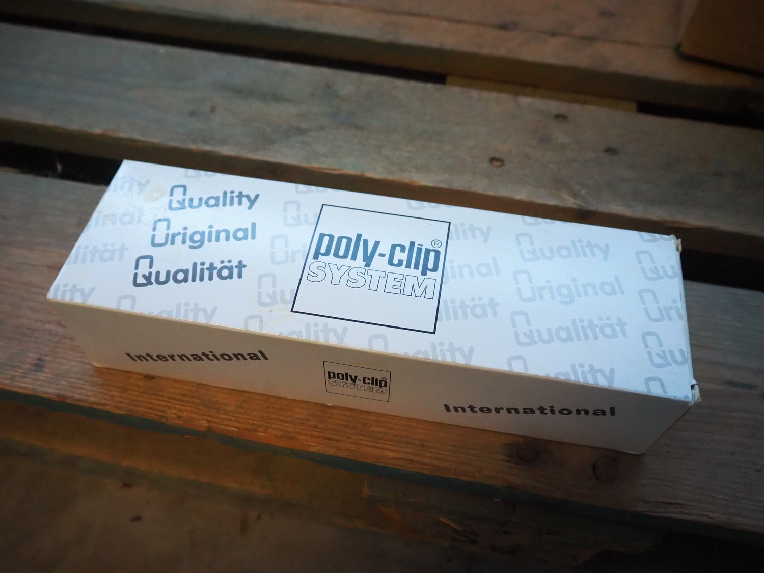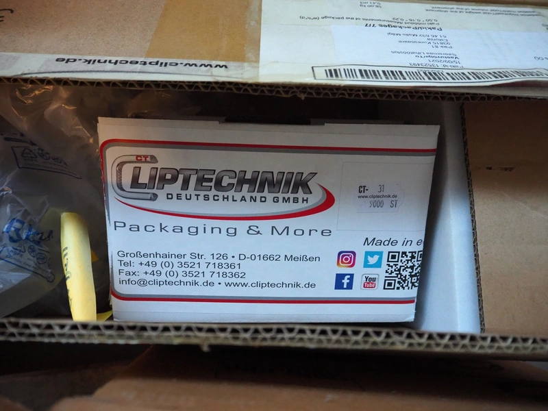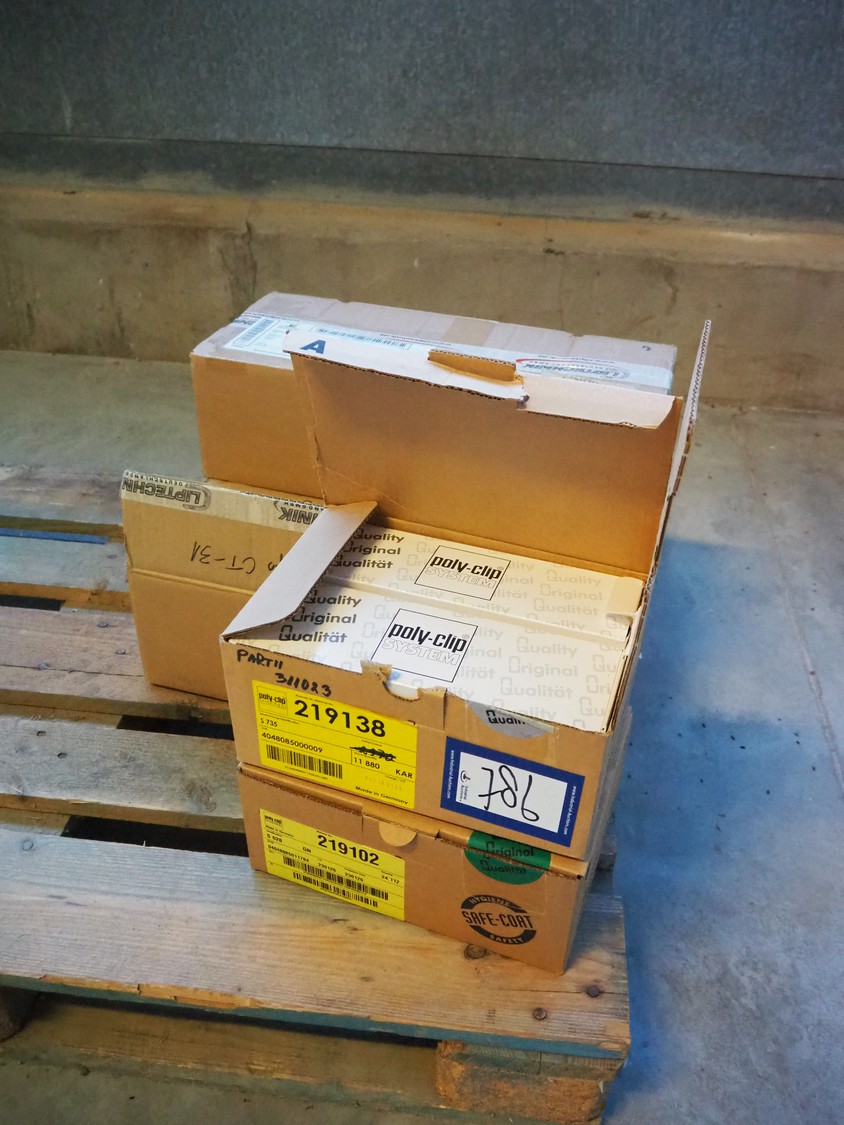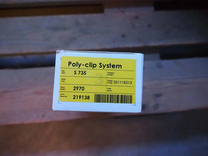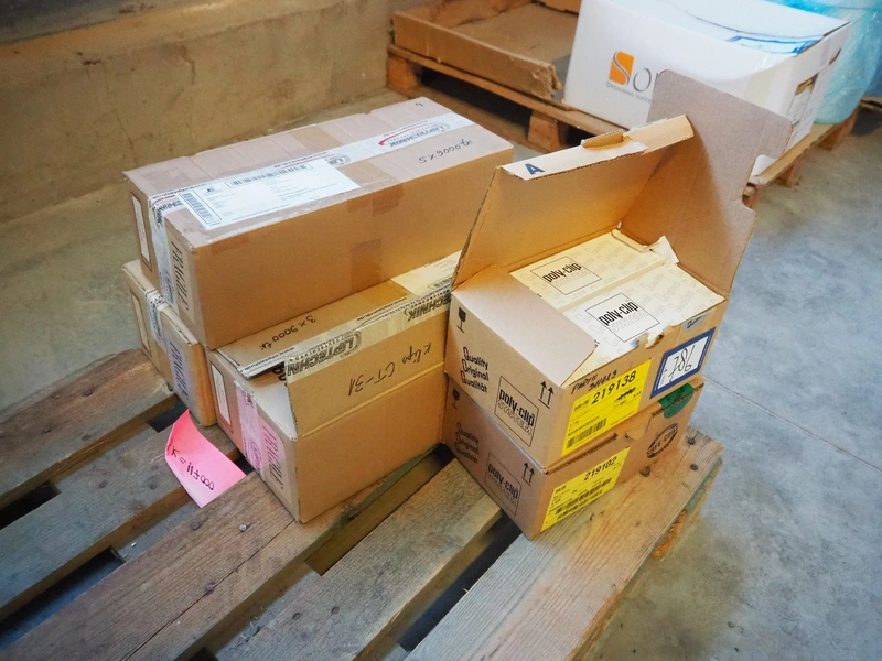 Pallet with various boxes with Poly-Clip System and Cliptechnik Deutschland GmbH clips.