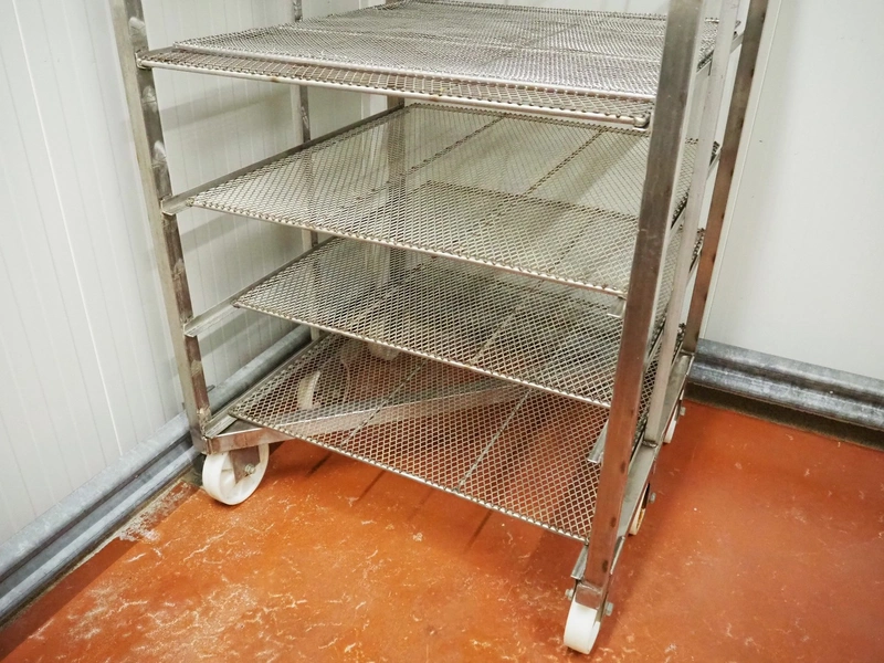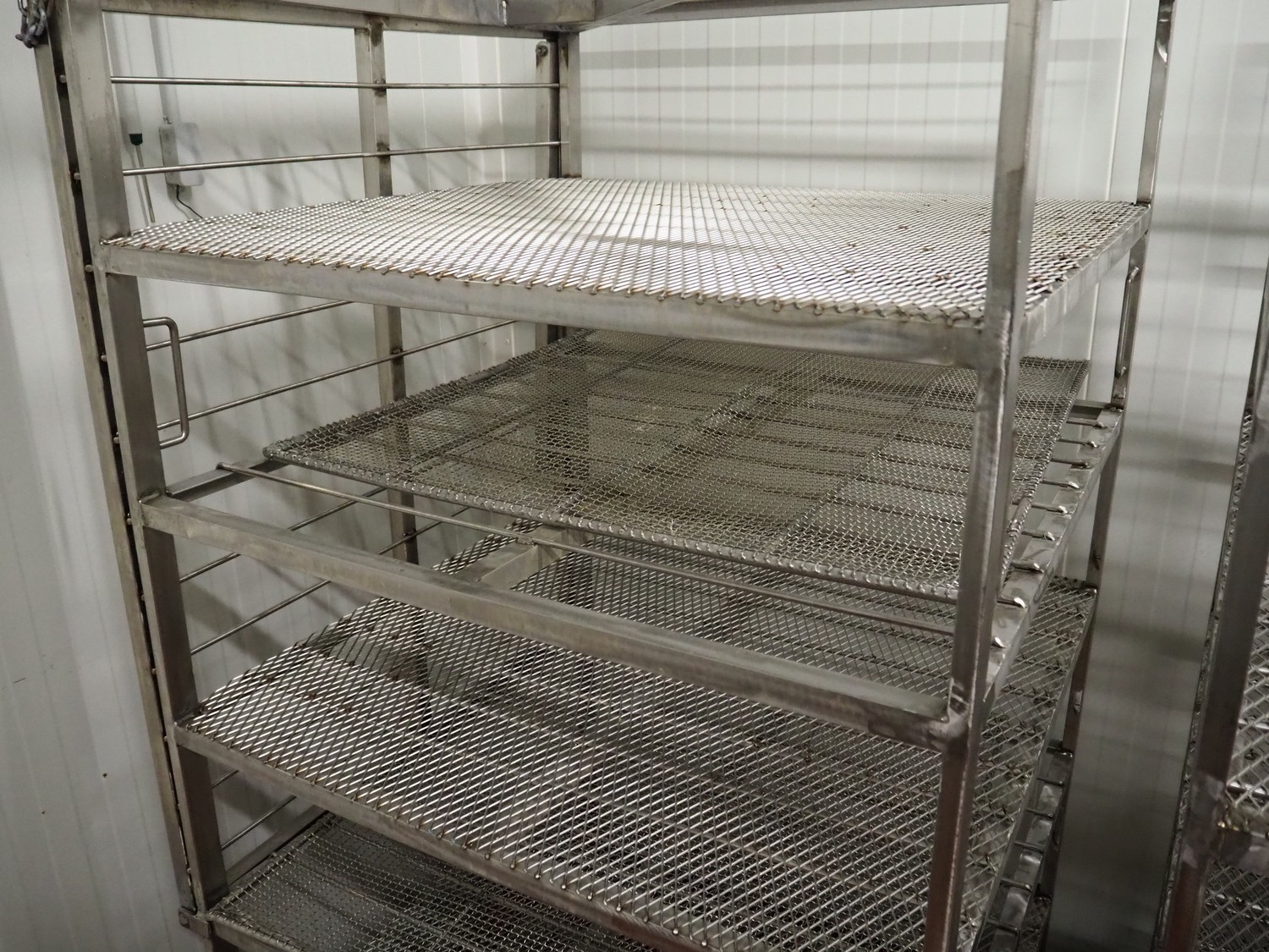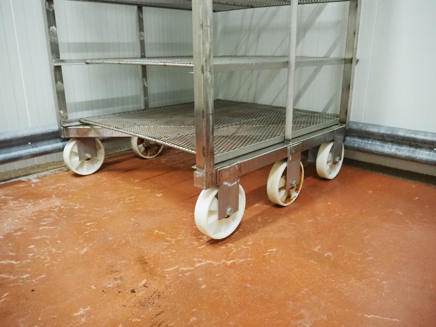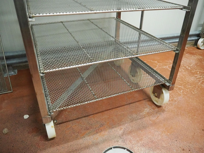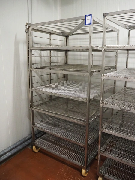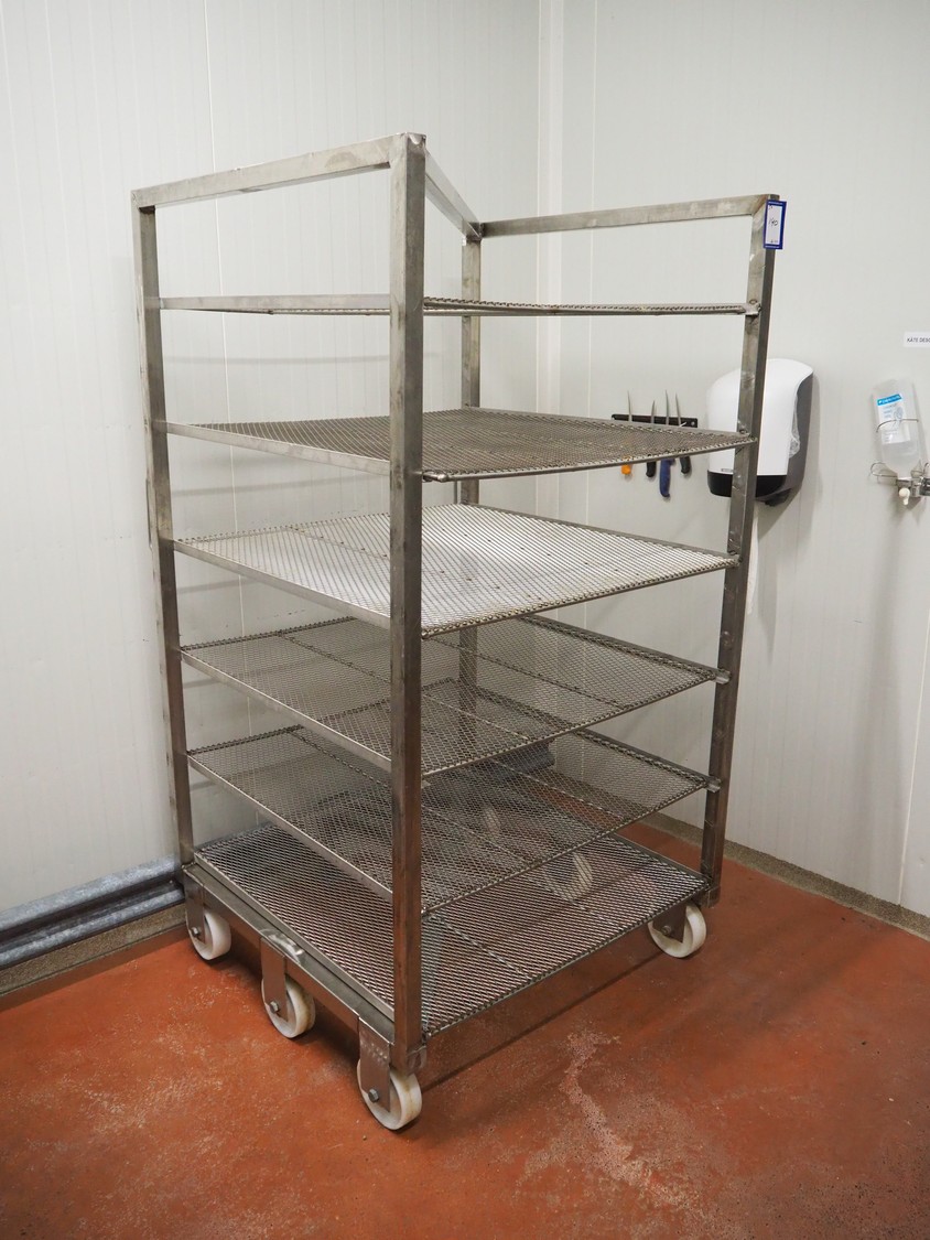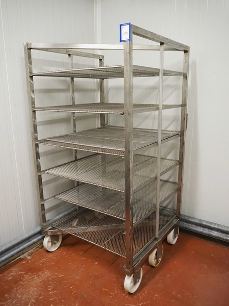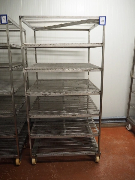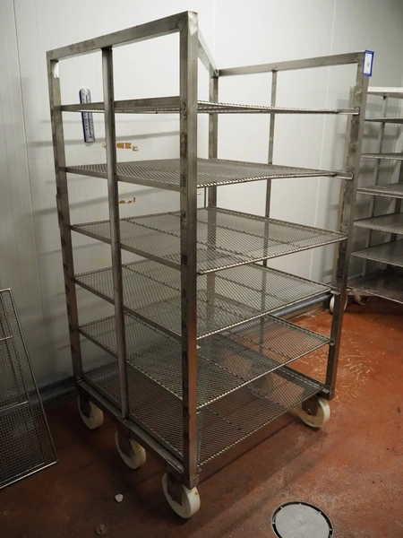 5 s/s cooking trolleys, 6 floors, dimensions floors: (6x) 1000 mm x 900 mm, total dimensions: (3x) 1010 mm x 1000 mm x 1900 mm and (2x) 1000 mm x 980 mm x 2000 mm.
